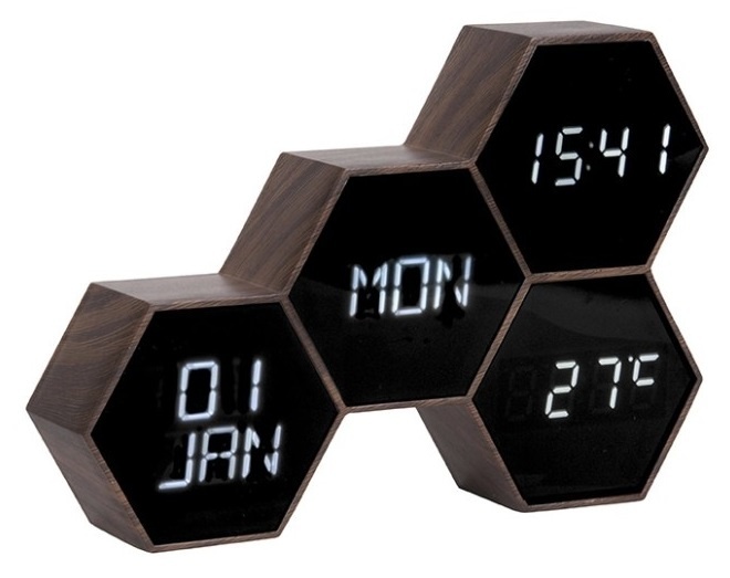 Deze moderne digitale wekker van het merk Karlsson is een grote hulp om op tijd wakker te worden. Maar dat is niet alles wat Six in the mix kan doen! Deze zeshoekige design wekker laat zien welke dag, datum en temperatuur het is. Het reageert ook op aanraking of geluid, is dat niet eenvoudig?
