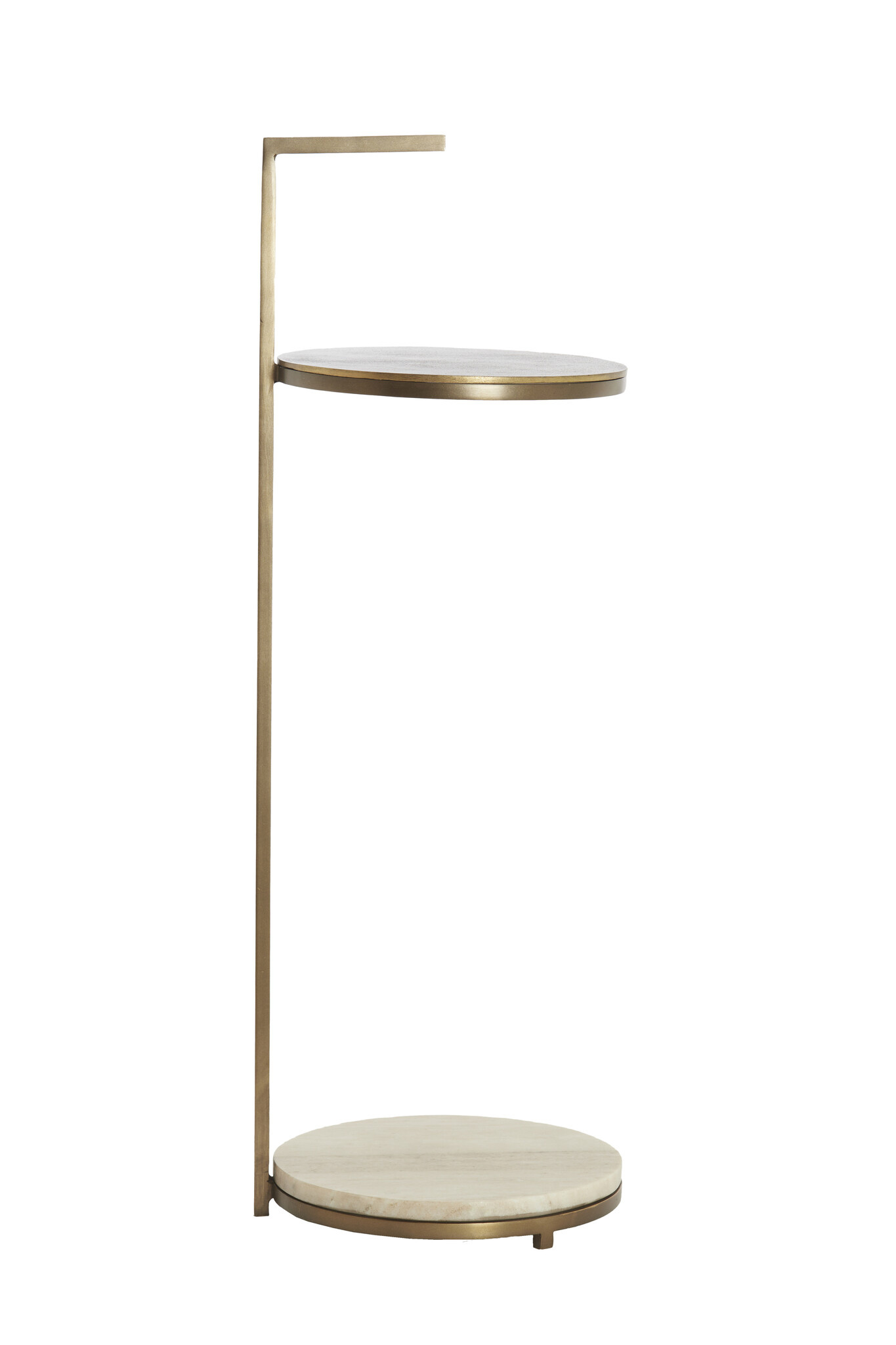 De Bijzettafel LEDA Ø26x76 cm van Light & Living is een stijlvolle en praktische toevoeging aan ieder interieur. Dankzij het slanke ontwerp schuift deze bijzettafel moeiteloos over de bank of fauteuil, waardoor je drankjes, snacks of decoratie altijd binnen handbereik hebt. De luxe combinatie van een metalen frame met een blad van marmer of travertin geeft de LEDA een elegante en moderne uitstraling.