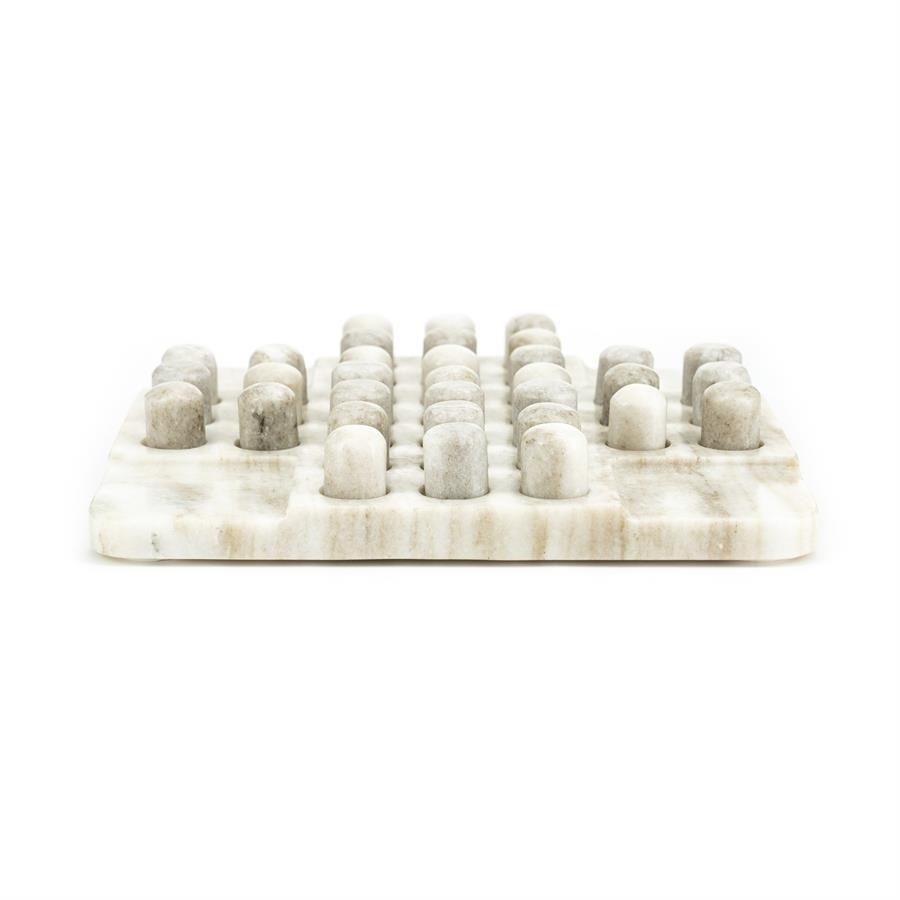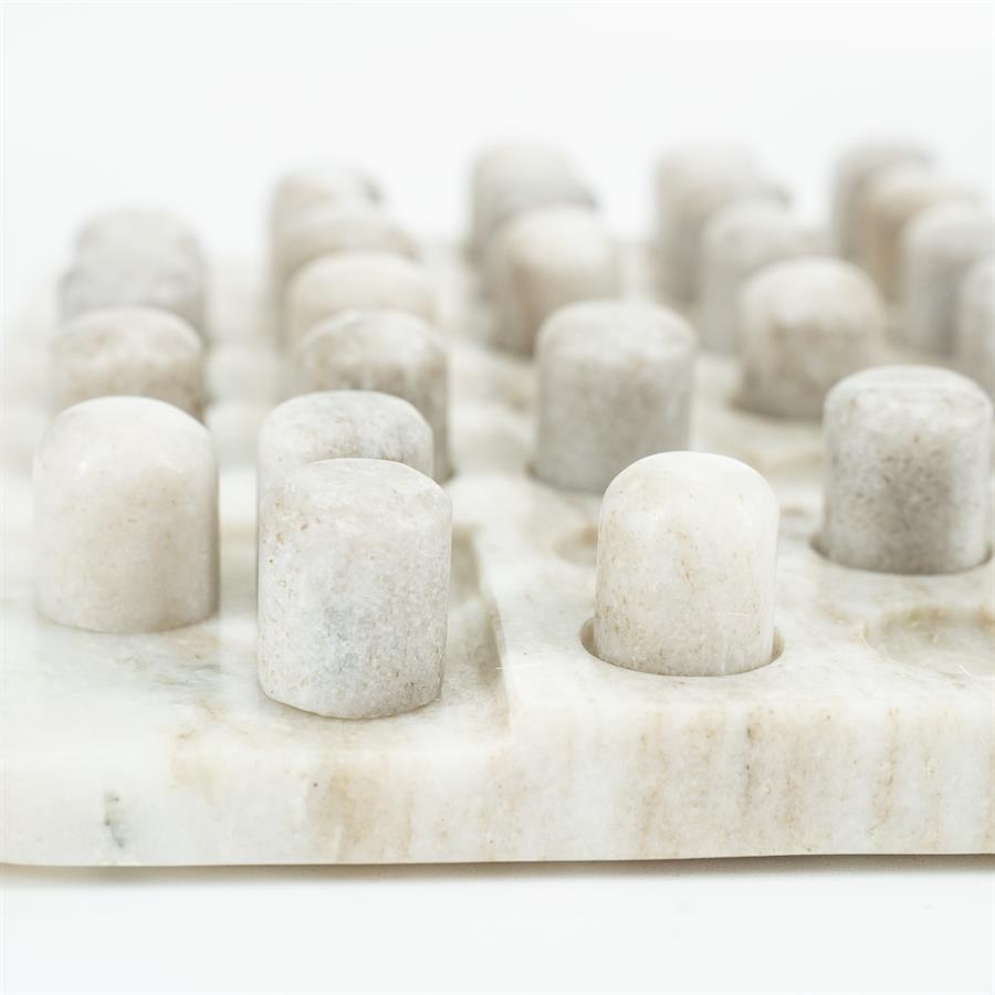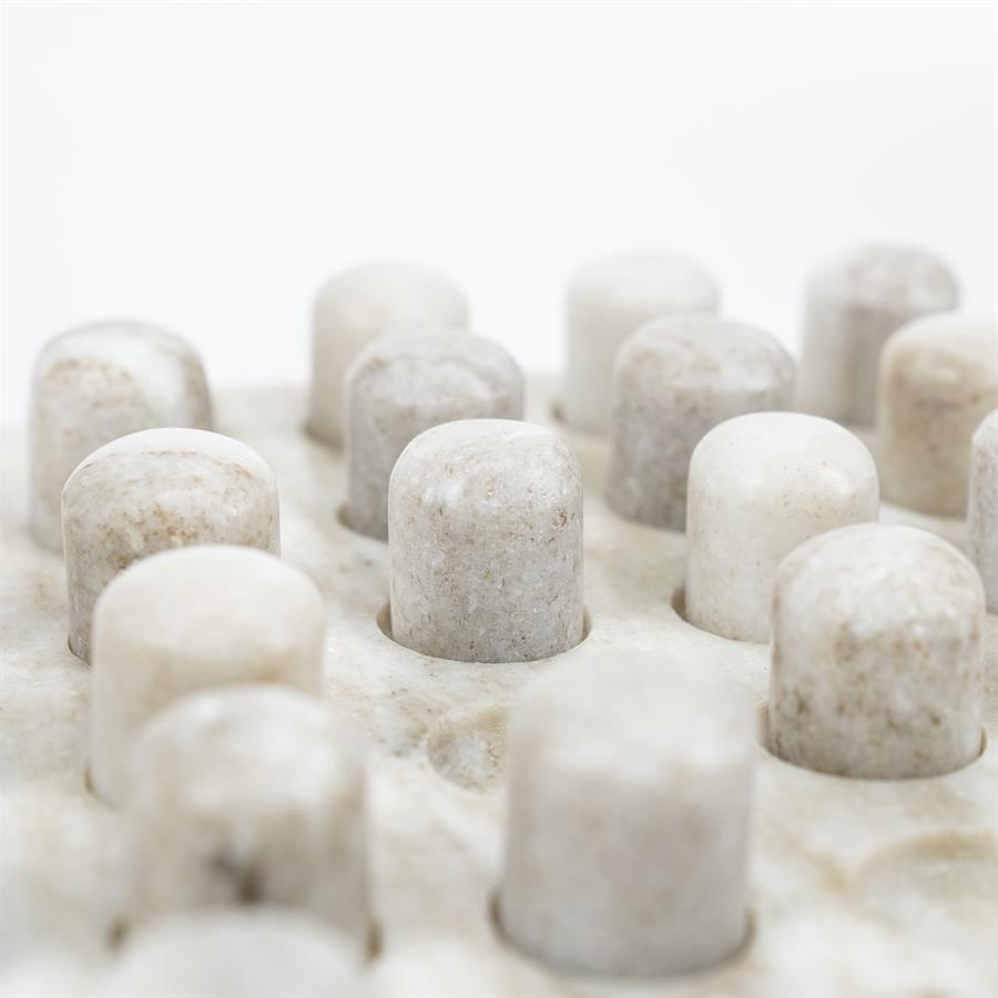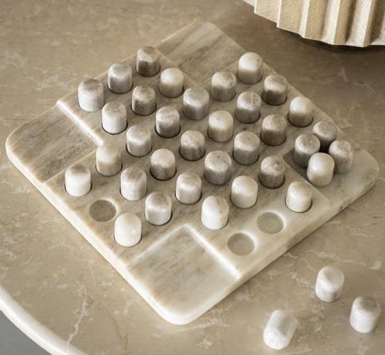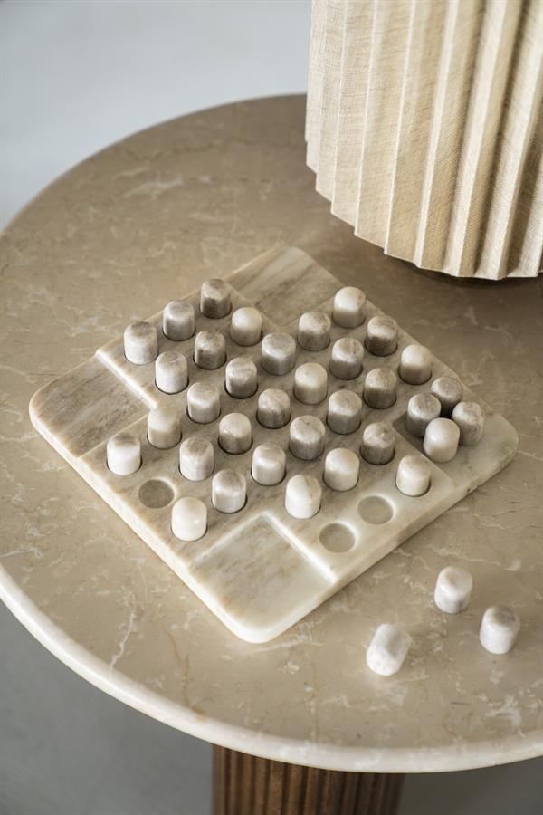 Bordspel Solitaire is een chique bordspel van marmer met een warme lichtbruine tekening. Bordspel Solitaire kan ook echt als spel gebruikt worden. Spel Solitaire past perfect in een hotel chique inrichting, maar komt ook prima tot zijn recht in een Wabi sabi, Japandi of Scandinisch interieur.