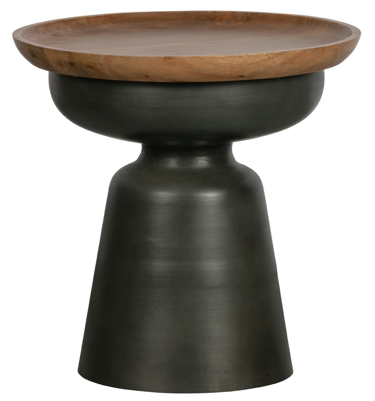 Het ronde tafelblad is vervaardigd uit mangohout en heeft een handige opstaande rand, welke mooi is afgerond. Dana heeft een totale hoogte van 47 cm, het blad heeft een diameter van 48 cm en een hoogte van 4 cm. Het opstaande randje is 2,5 cm hoger dan het blad. De poot is 30 cm hoog en ø 26 cm. Het smalle tussenstuk is 3 cm hoog en heeft een doorsnede van 12 cm. Het stuk van de poot, onder het blad heeft een hoogte van 10 cm en ø 38 cm.