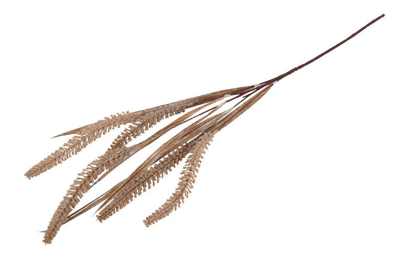 Het Gras / Pluim Cetaria bruin is een decoratieve kunsttak met een natuurlijke, aardse uitstraling. De warme bruine kleur en fijne pluimen geven deze siergrastak een realistische look, waardoor hij nauwelijks van echt te onderscheiden is. Ideaal als basis of opvulling in kunstbloemstukken, maar ook prachtig als los element in een vaas.