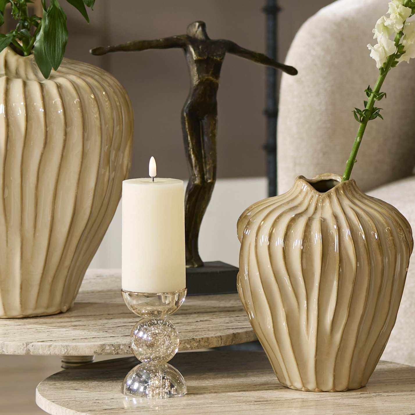 Of je interieur nu modern, hotel chic, bohemian of landelijk is: de ITINGA kaarsenhouder voegt altijd een luxe en warme touch toe. Een subtiel statement dat moeiteloos opgaat in je styling, maar toch de aandacht trekt.