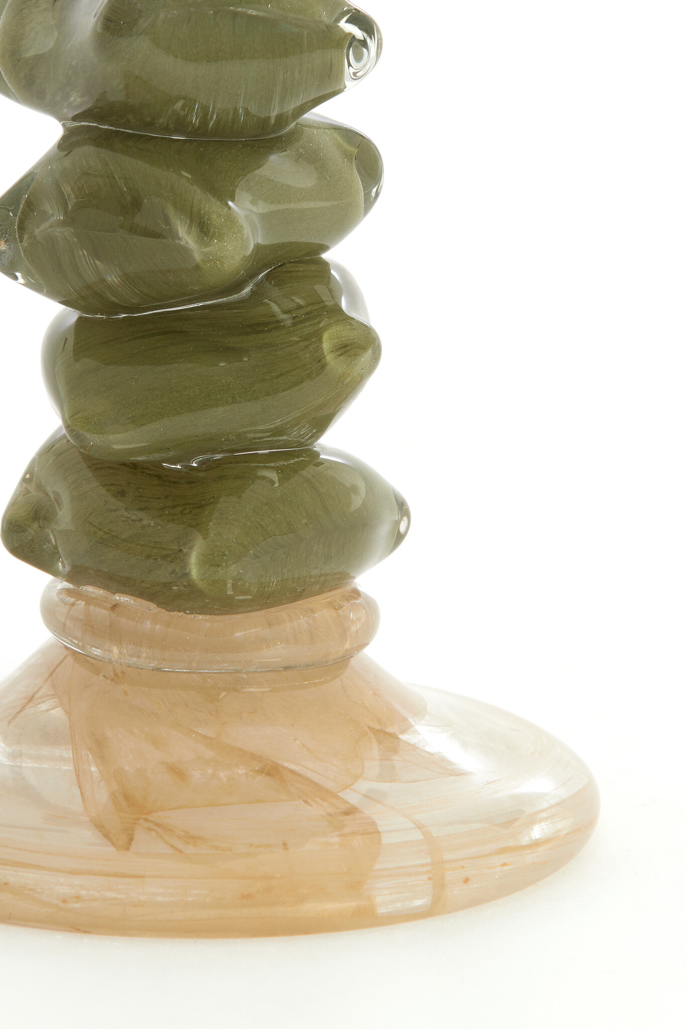 Laat je interieur stralen met de ESTINA kandelaar van Light & Living, exclusief verkrijgbaar bij De Woon Winkel. Deze stijlvolle kandelaar in groen en bruin combineert organische vormen met een luxueuze glaslook. De speels gestapelde ‘stenen’ creëren een krachtig en toch verfijnd design dat rust en karakter uitstraalt.