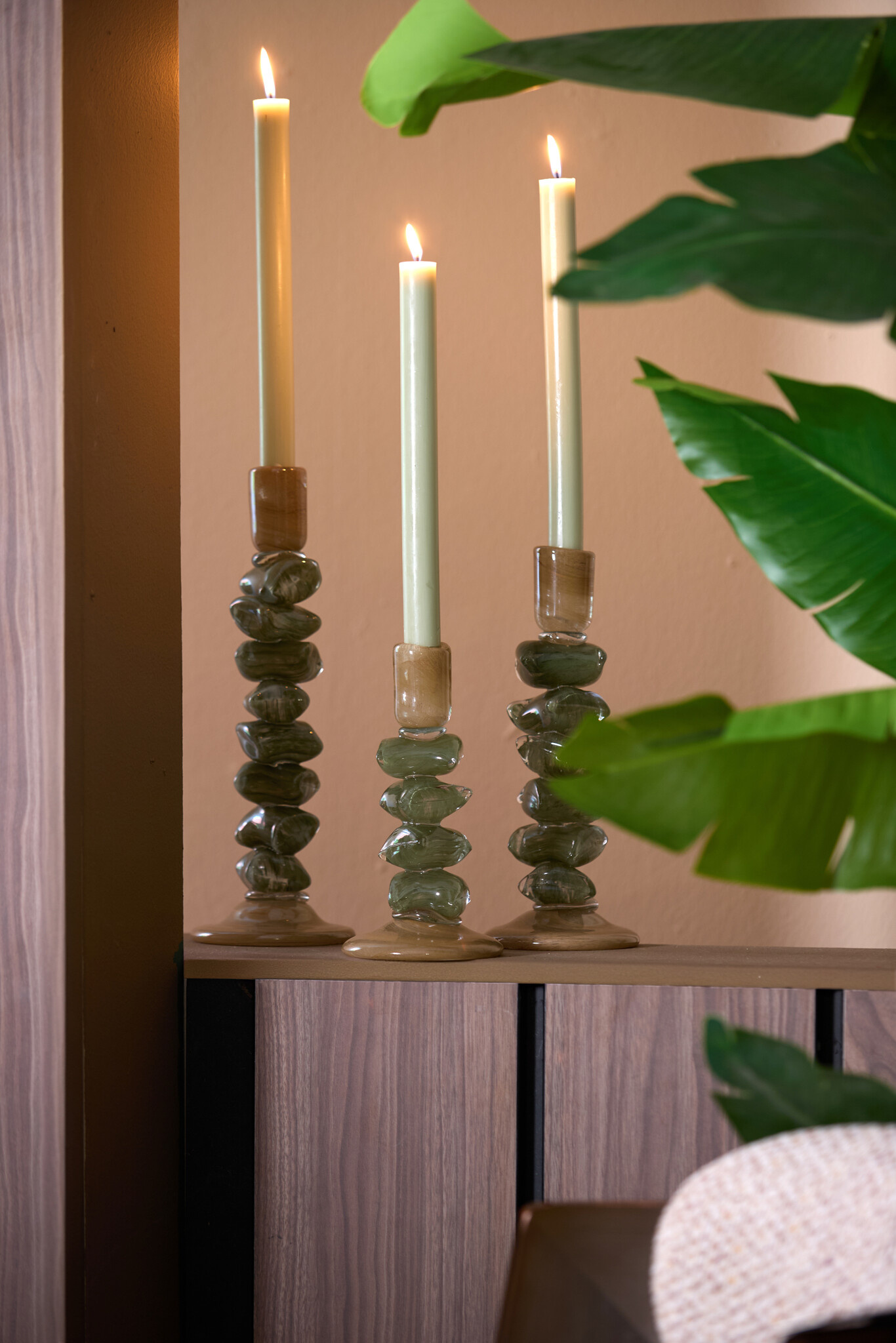 Kandelaar ESTINA Ø11,5x23 cm – Natuurlijke elegantie in groen & bruin