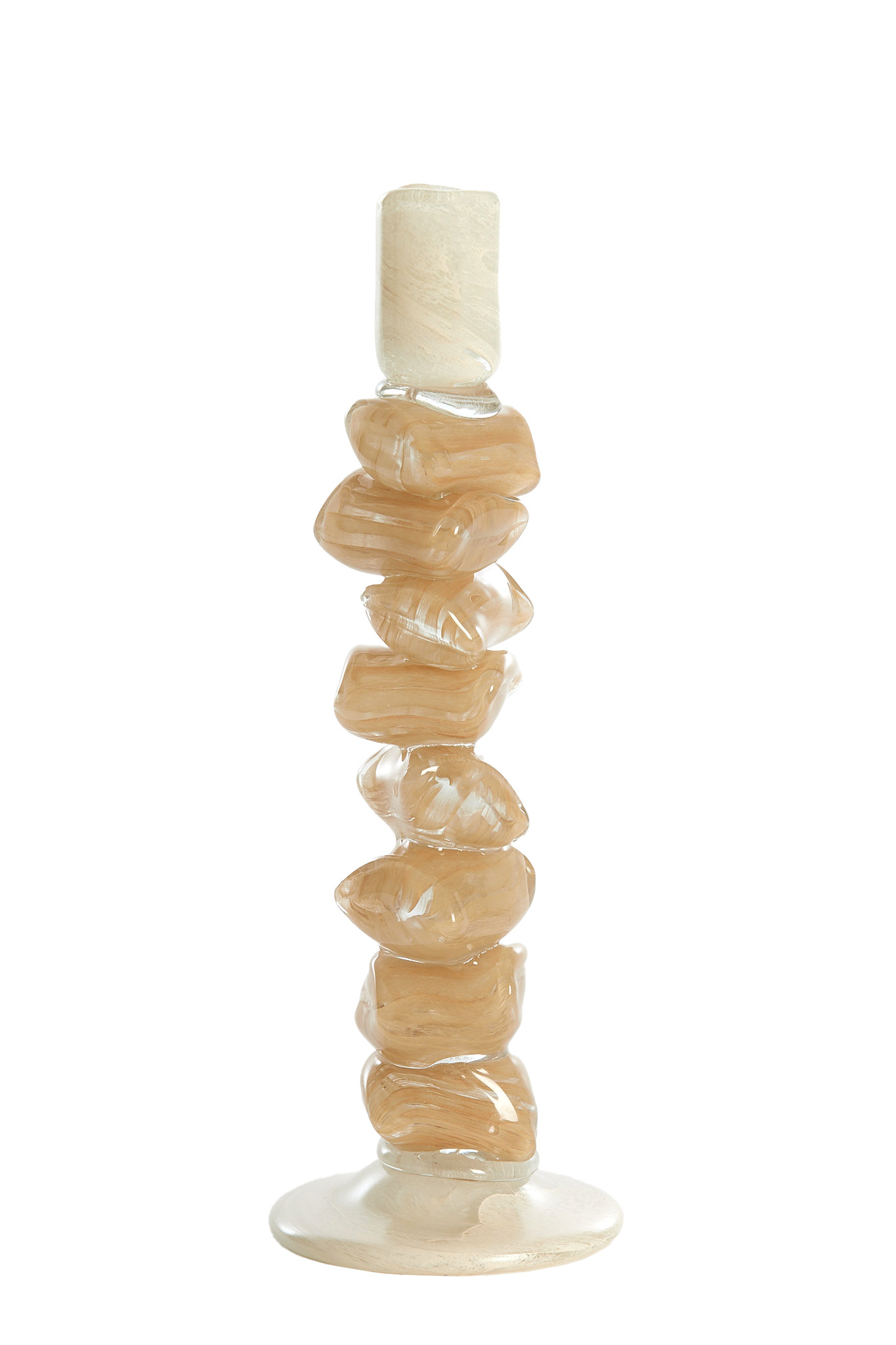 Kandelaar ESTINA Ø11,5x35 cm – Kunstzinnige klasse in crème & bruin