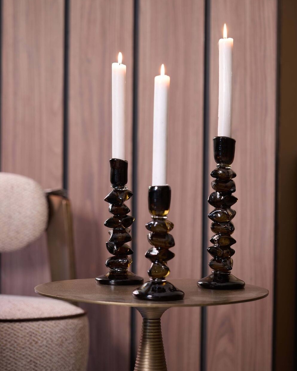 De ESTIVA kandelaar is leverbaar in drie verschillende maten, waardoor je eenvoudig kunt mixen en matchen. Plaats ze samen op een eettafel, salontafel of dressoir voor een harmonieus en elegant effect.