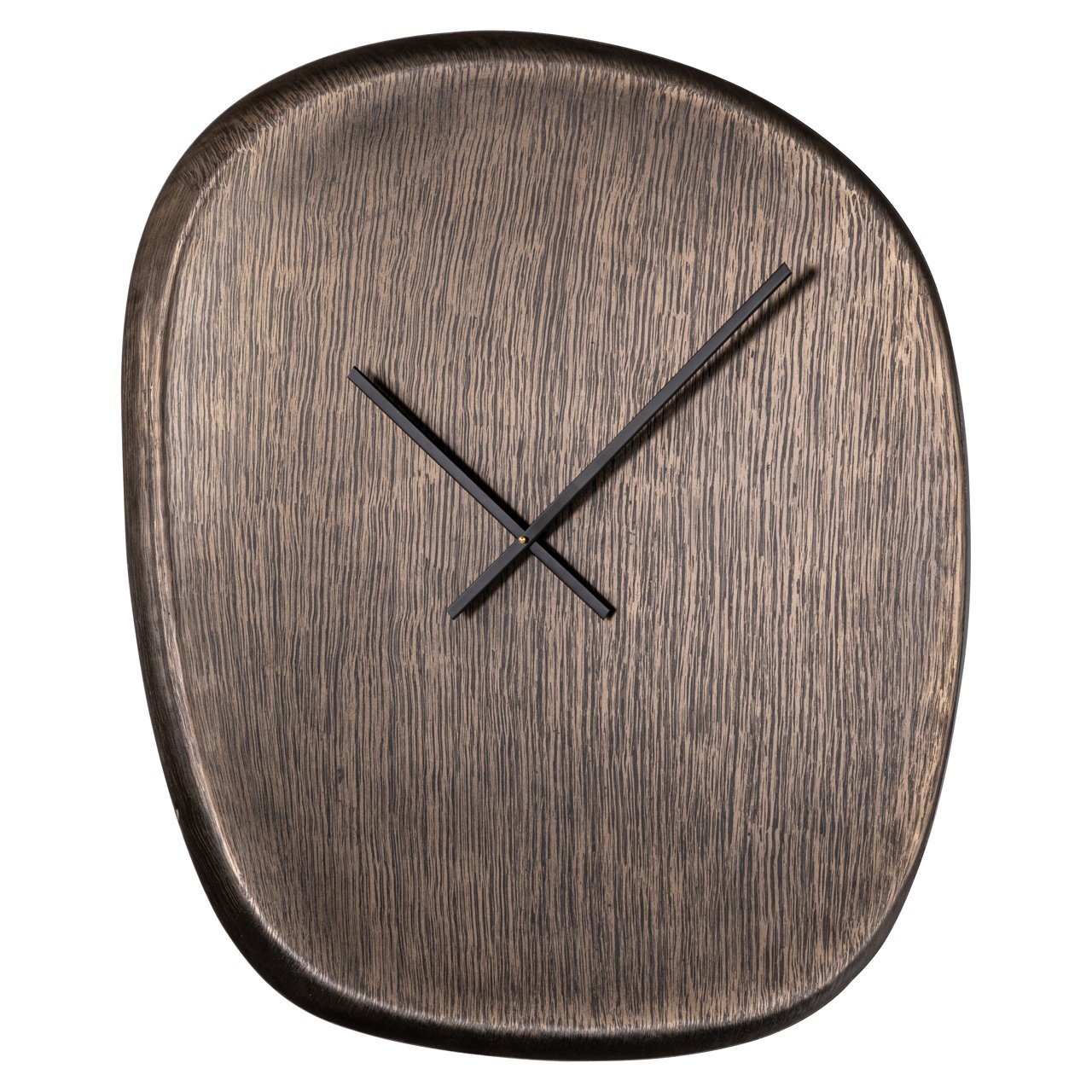 De warme bronskleur en subtiele structuur geven de klok een natuurlijke, luxe uitstraling. De organisch afgeronde vierkante vorm zorgt voor een zachte en moderne look, terwijl de minimalistische wijzers het geheel rustig en stijlvol houden. Dankzij het handgemaakte karakter is elke klok uniek en voorzien van een eigen uitstraling.