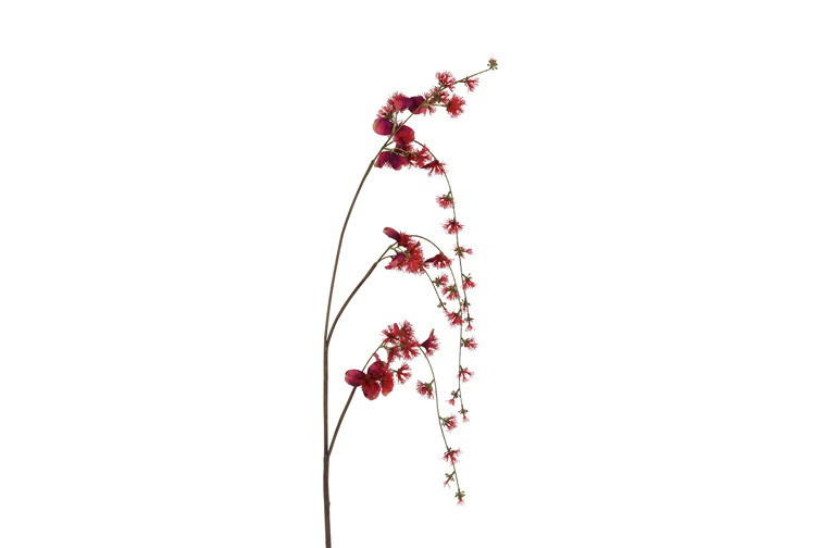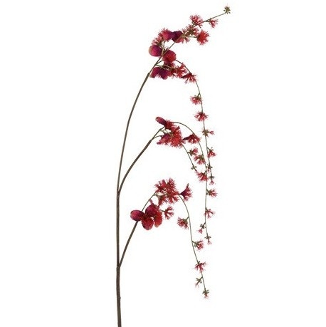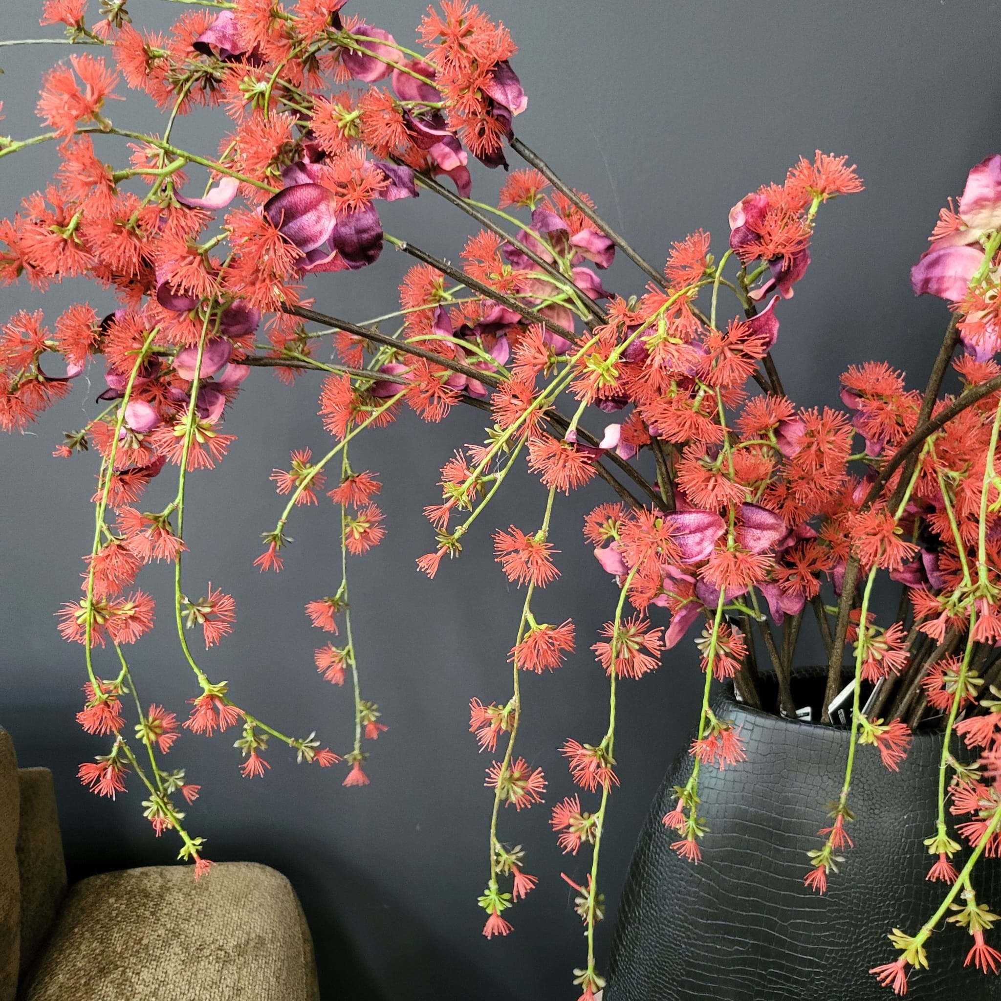 Breng kleur en elegantie in je interieur met de kunstbloem Akebia, verkrijgbaar in warme oranje- en zachte lilatinten. De verfijnde vertakkingen en subtiele bladeren zorgen voor een luchtige, natuurlijke uitstraling. Perfect als enkele blikvanger of als speels accent in een bloemenarrangement. De levendige kleuren geven elk seizoen een frisse en levendige sfeer. Combineer beide tinten voor een harmonieus en dynamisch effect.