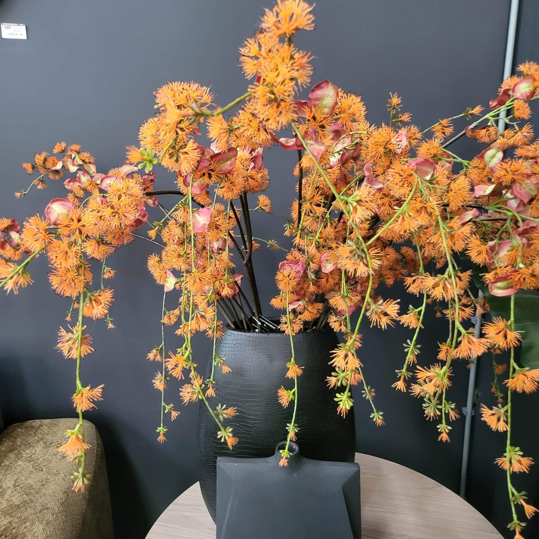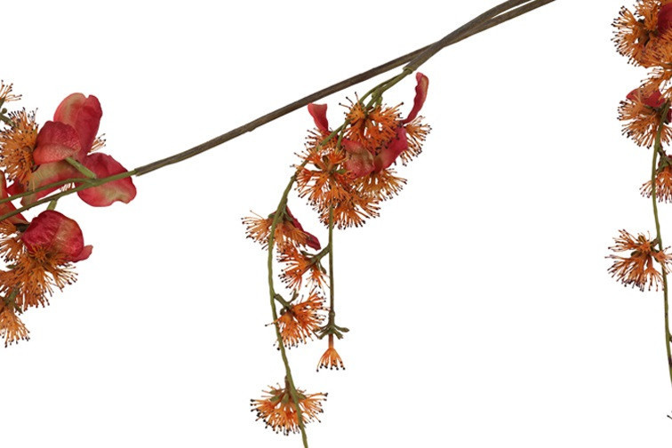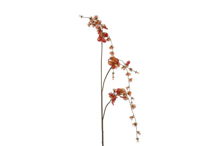 Breng kleur en elegantie in je interieur met de kunstbloem Akebia, verkrijgbaar in warme oranje- en zachte lilatinten. De verfijnde vertakkingen en subtiele bladeren zorgen voor een luchtige, natuurlijke uitstraling. Perfect als enkele blikvanger of als speels accent in een bloemenarrangement. De levendige kleuren geven elk seizoen een frisse en levendige sfeer. Combineer beide tinten voor een harmonieus en dynamisch effect.