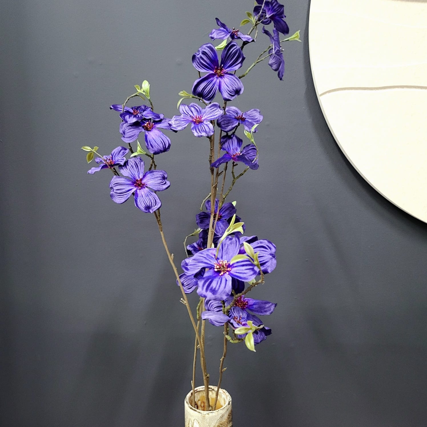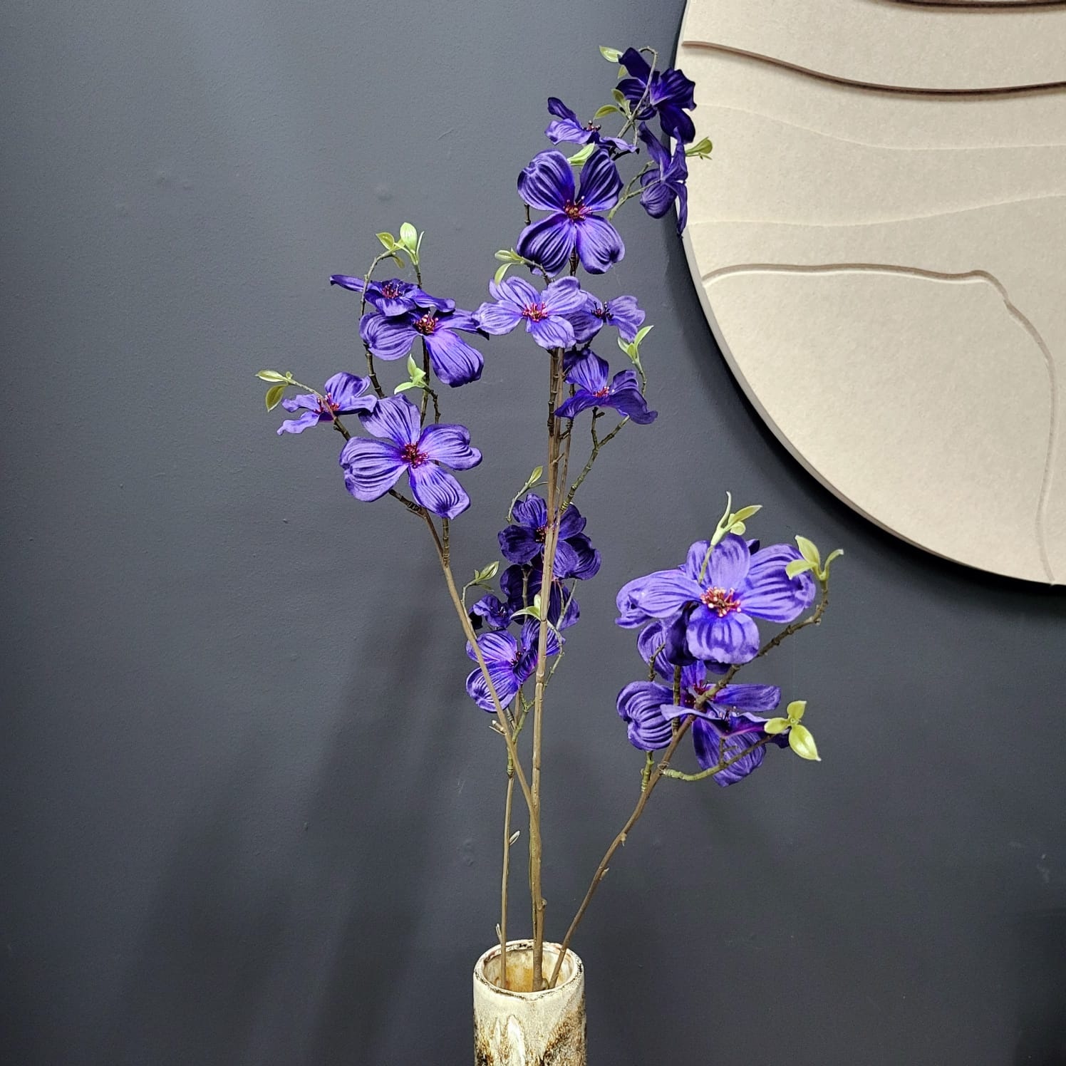 De Kunstbloem Cornus Paars van Countryfield is een stijlvolle en opvallende decoratietak die jouw interieur direct verrijkt met een vleugje natuurlijke charme. Met zijn dieppaarse bloemen en subtiele groene accenten straalt deze kunstbloem luxe en verfijning uit.