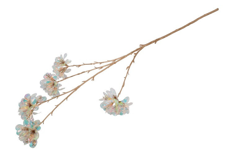 De kunstbloem Plumeria iriserend straalt een tropische charme uit met haar verfijnde bloemblaadjes en subtiele glinstering. Verkrijgbaar in roze en paars iriserend, biedt deze bloem een speels kleuraccent voor elk interieur. De verschillende formaten van sierlijke vertakte varianten tot de royale L-versie maken het eenvoudig om een opvallend statement te creëren of juist een subtiele toevoeging te doen aan bloemstukken. Gemaakt van hoogwaardige kunstzijde voor een luxueuze uitstraling en langdurige schoonheid.
