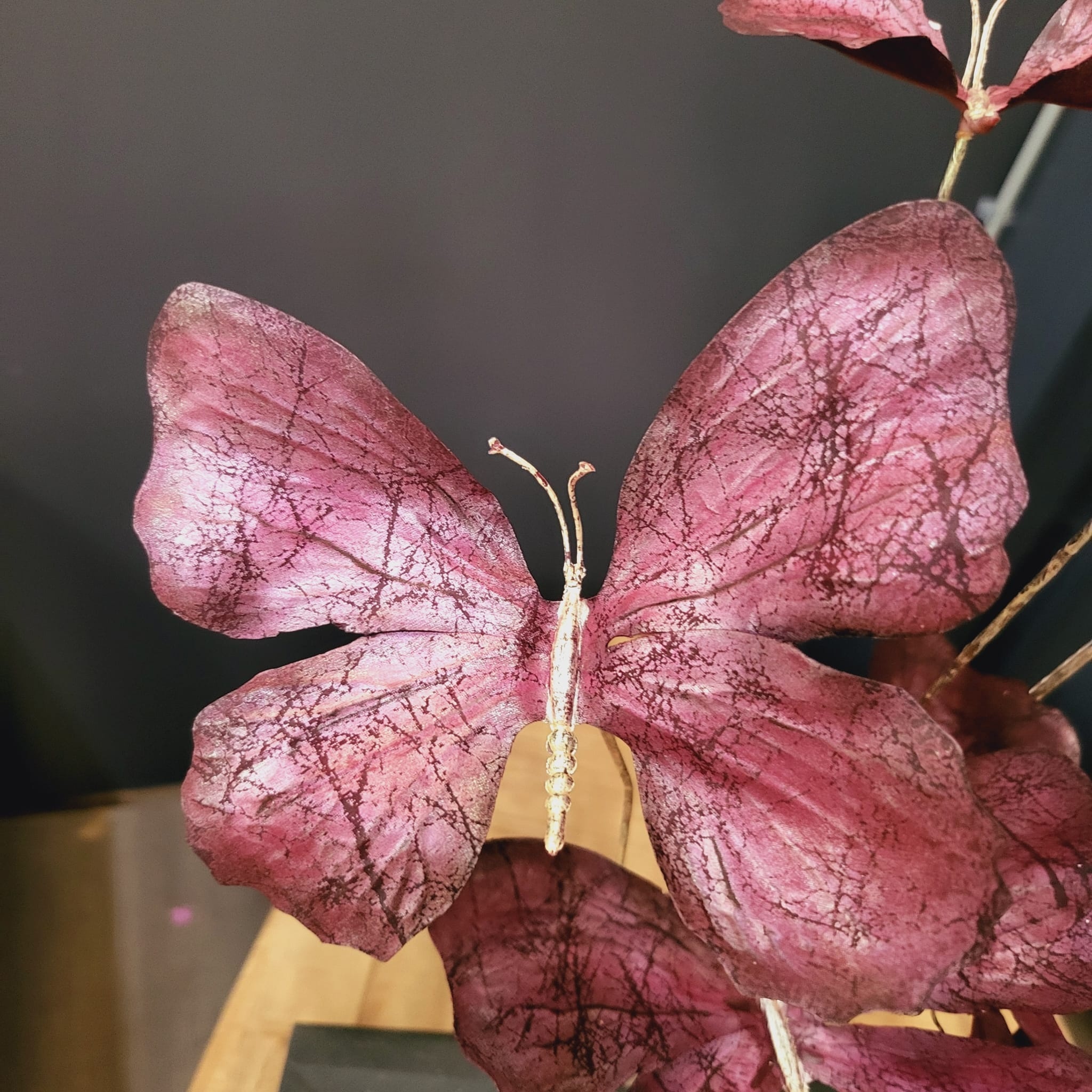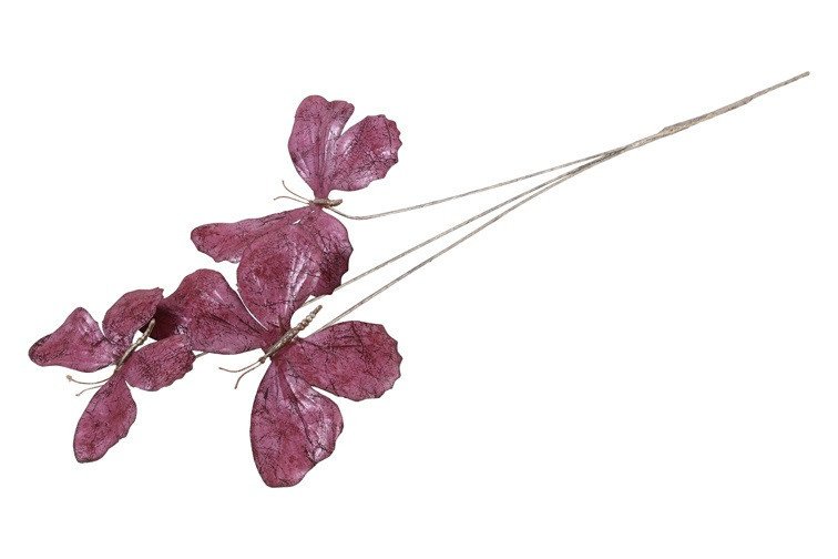 Op deze tak zitten 3 mooie lilakleurige vlinders. Doe deze stijlvol in een vaas of combineer met bloemen voor een speelseffect. De vlindertakken bieden we per 3 takken (met dus in totaal 9 vlinders) aan.