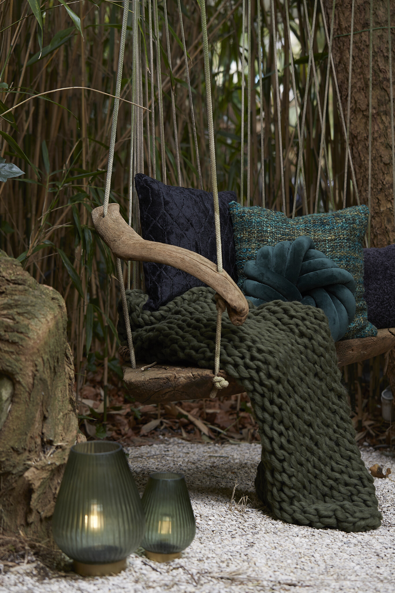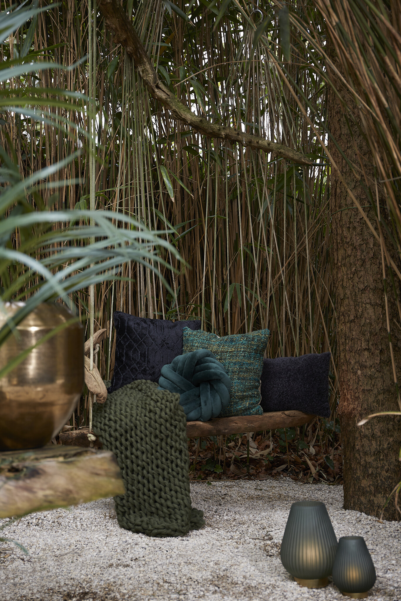 Een mooi vormgeven kussen in de vorm van een knot. Dit kussen brengt direct sfeer in je interieur.