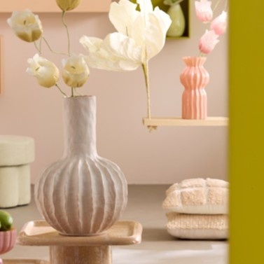 De combinatie van lichtroze en crème maakt dit kussen ideaal voor een Scandinavisch, modern of bohemian interieur. Het kussen laat zich eenvoudig combineren met neutrale tinten, houtsoorten en andere zachte pastels.