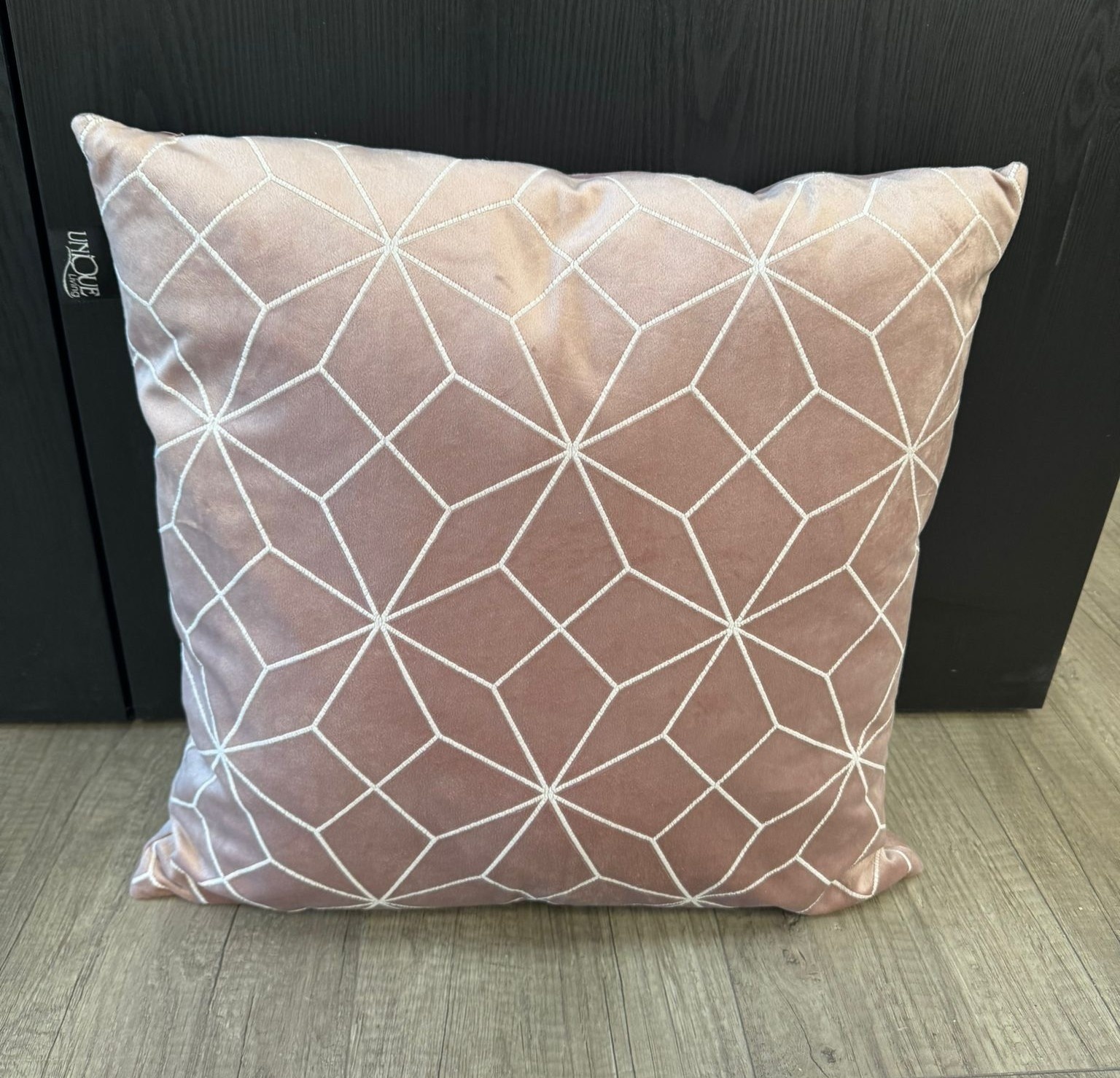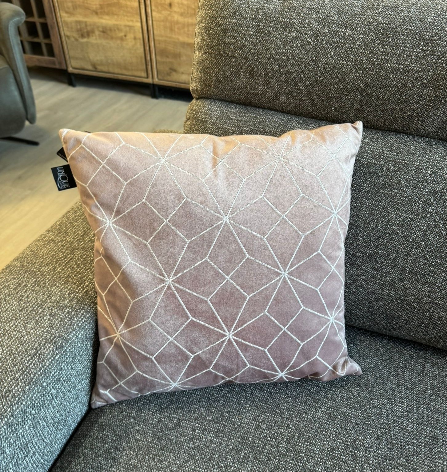 Met het eigentijdse patroon in een mooie roze kleur, is dit kussen extra uitermate geschikt om je bank mee te versieren.