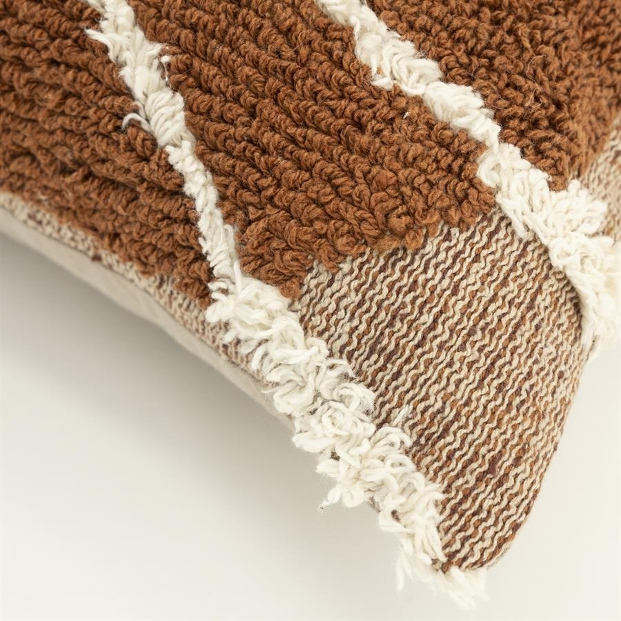 Dit kussen is handgemaakt en van uitstekende kwaliteit. Kussen Ogani is niet alleen stijlvol, maar ook veelzijdig. het past perfect bij het vloerkleed Ogani, waardoor je een harmonieus geheel kunt creëren in je woonruimte. De combinatie van materialen zorgt voor een zachte en comfortabele textuur. De warme kleuren bruin, oranje en wit geven een gezellige uitstraling aan elke ruimte.