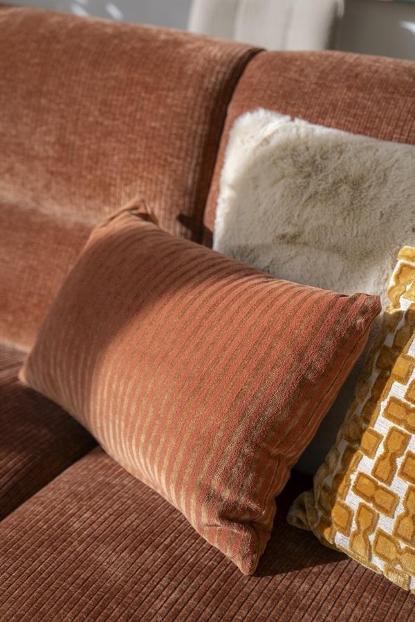 Combineer kussen Sirun met het rechthoekige plaid Sirun voor een stijlvol geheel. Sirun is leverbaar in terracottageel en terracotta oranje.