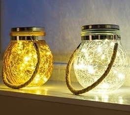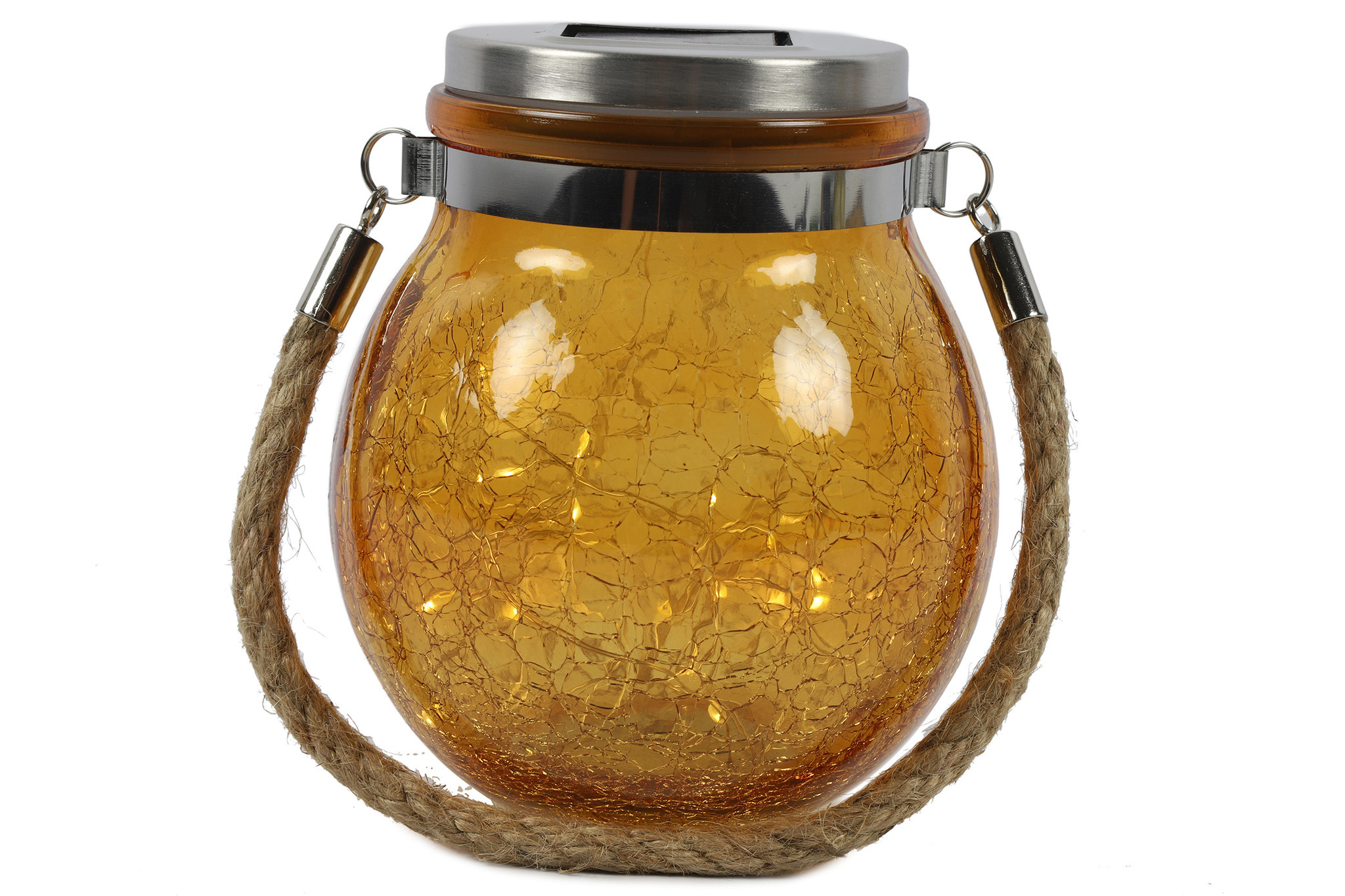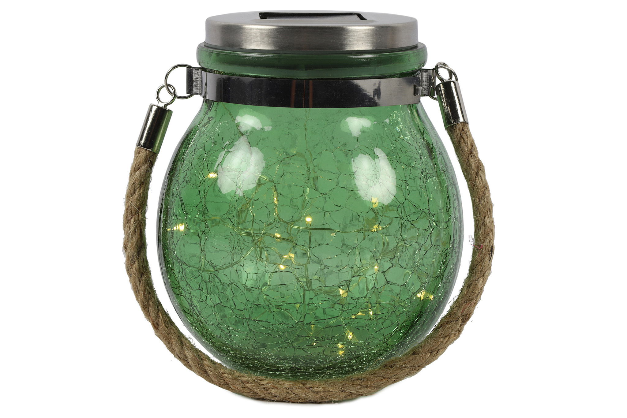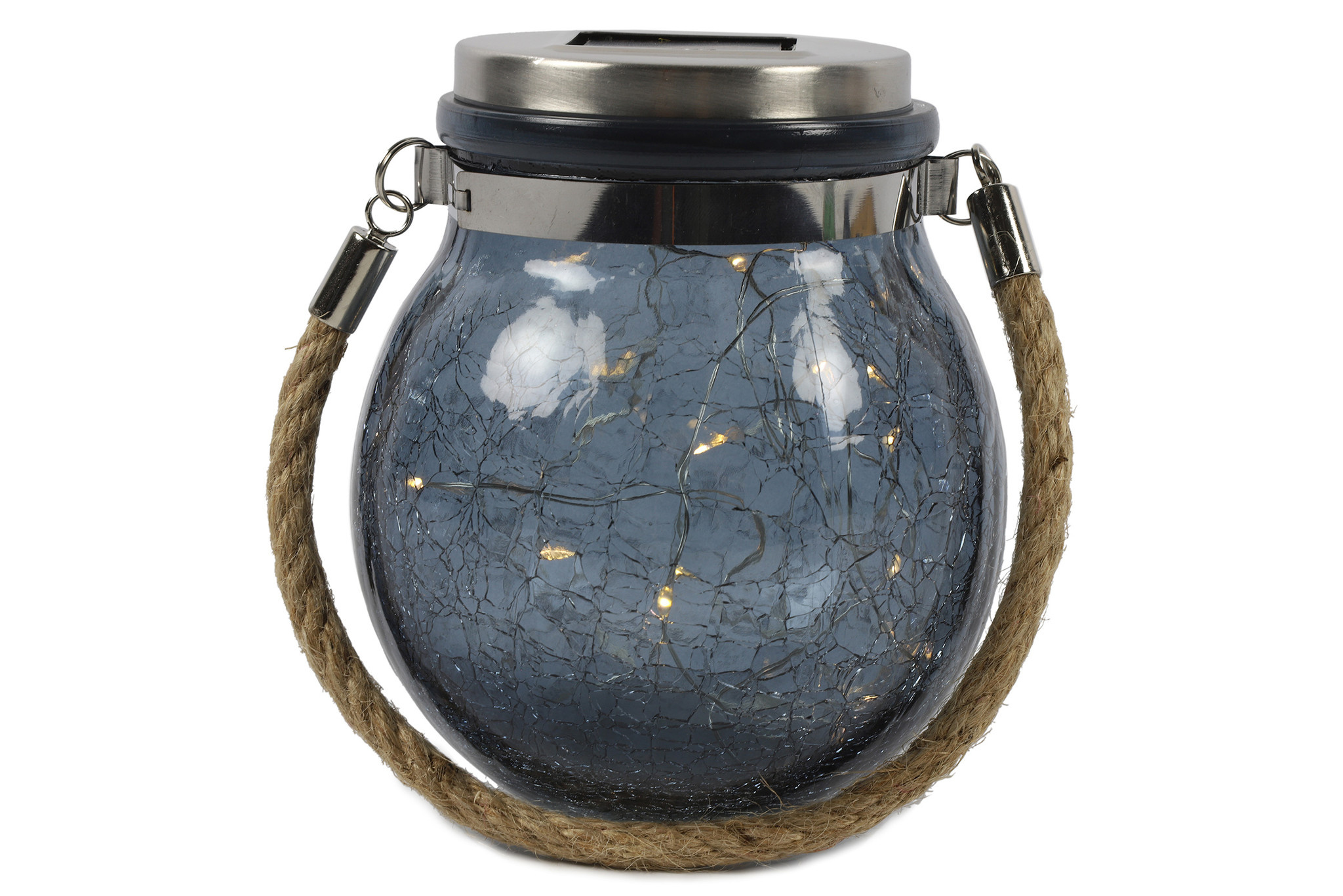 Zodra het schemerig wordt dan gaat deze mooie sfeervolle Solar lamp vanzelf branden. Gezelligheid heb je snel in je tuin of op het balkon met deze led lamp van Countryfield. De lamp op zonne-energie kun je ophangen aan het jute touw maar staat ook heel leuk op de tuintafel. Het glas van de lamp is uitgevoerd in craquelé, dit zorgt voor een mooi speels effect van het licht.