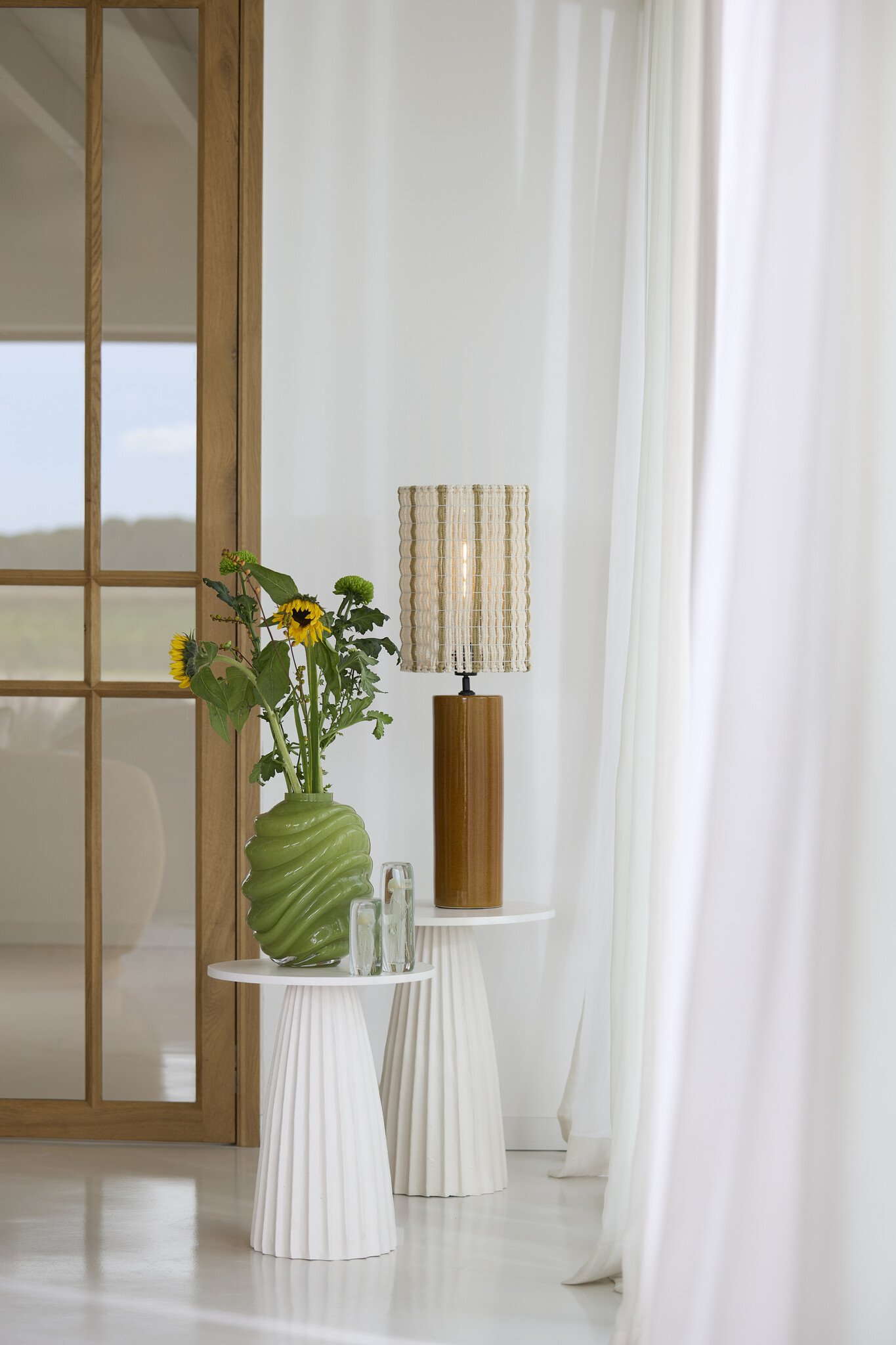 Dankzij het formaat van 26 cm diameter is deze lampenkap ideaal voor middelgrote tafellampen of slankere vloerlampen. Combineer hem met een houten of beige lampvoet voor een ton-sur-ton effect, of kies juist voor zwart metaal voor een modern contrast.