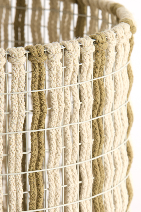 De SIMBELIN lampenkap van Light & Living is een echte sfeermaker in huis. De kap is opgebouwd uit een subtiel metalen frame dat is afgewerkt met verticaal gevlochten touw in crème- en olijfgroene tinten. Deze combinatie zorgt voor een warme, natuurlijke look die direct rust en karakter toevoegt aan je interieur.