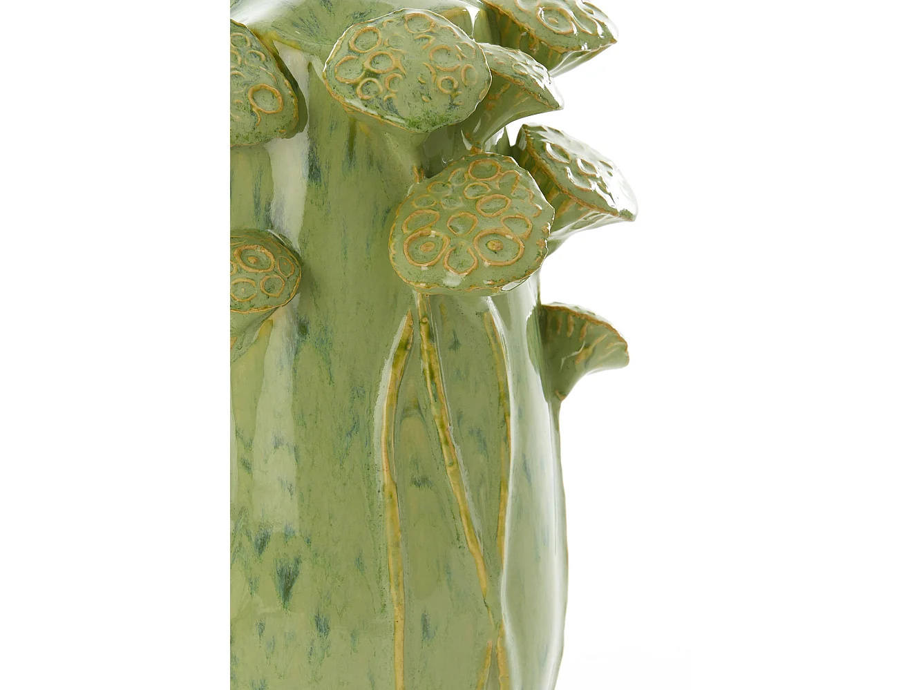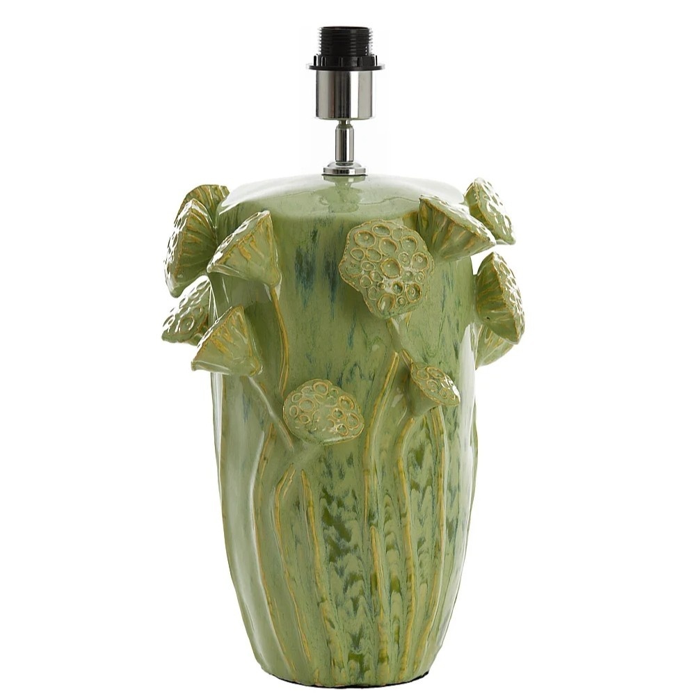 Lampvoet LAVCI van Light & Living is een echte eyecatcher met een uniek en artistiek design. De organische vorm en het verfijnde reliëf van bladeren en bloemen geven deze lampvoet een speelse en natuurlijke uitstraling. De zachte groene tint versterkt het botanische karakter en brengt rust en sfeer in je interieur.