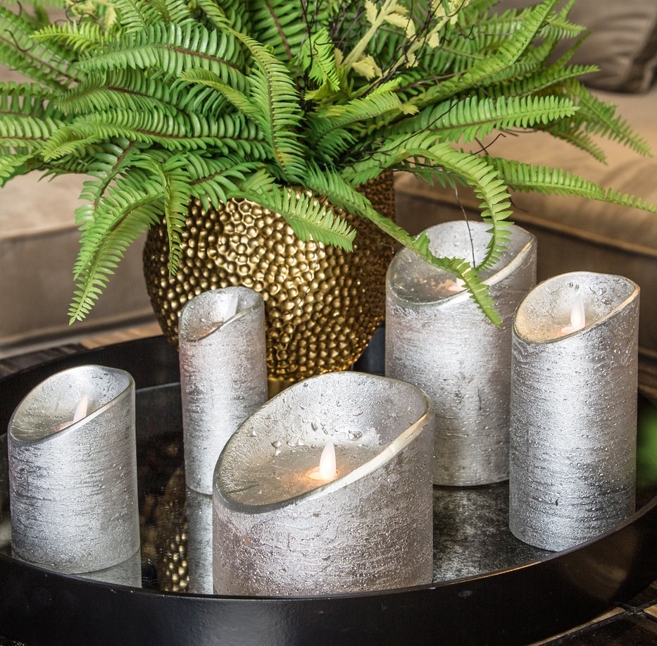 LED licht kaars metallic taupe met beweegbare vlam XS