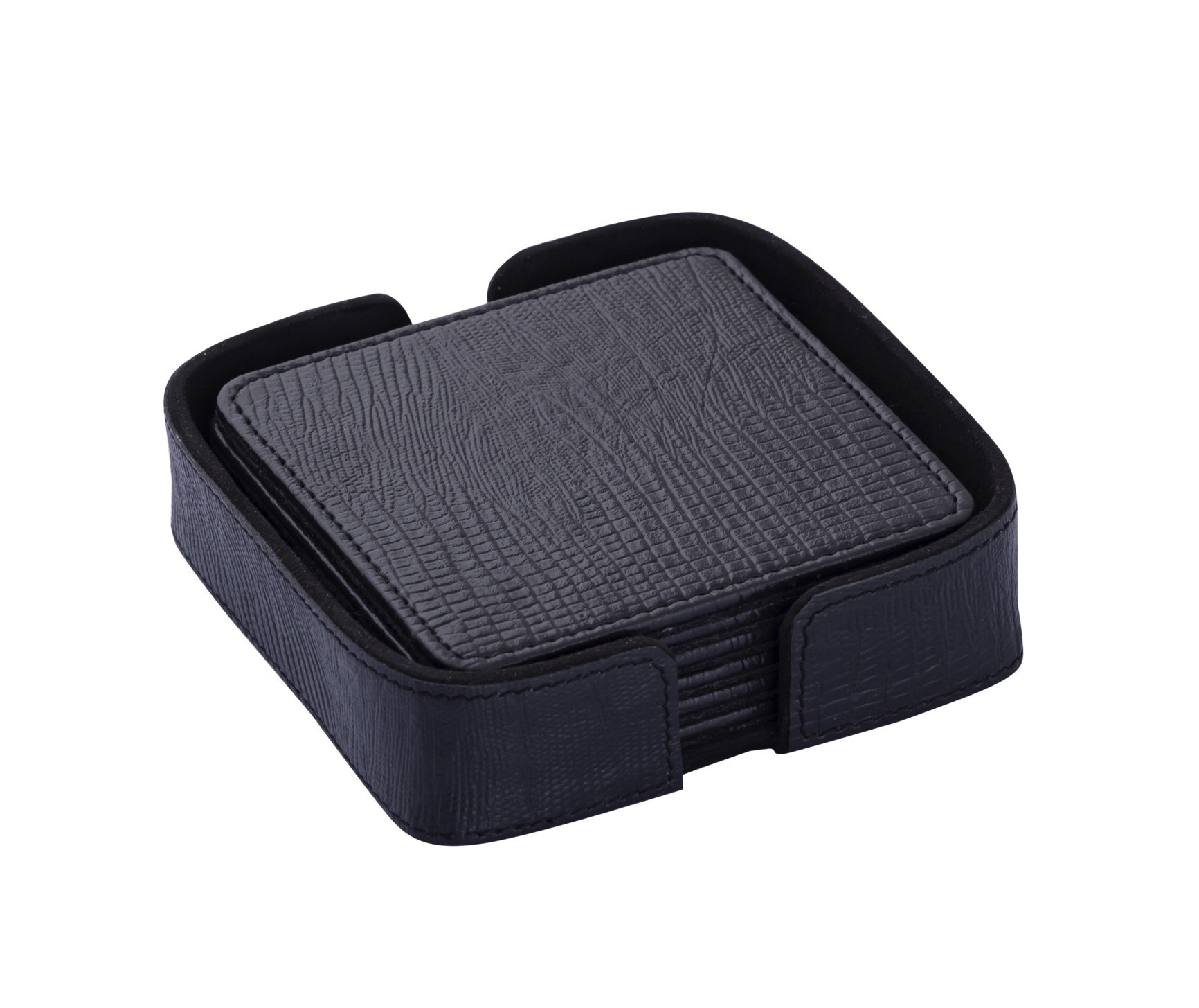 Mooie set van 6 onderzetters in een bijpassende houder. De onderzetters hebben een mooie zwarte kleur. Hier kun je wel een drankje op serveren!