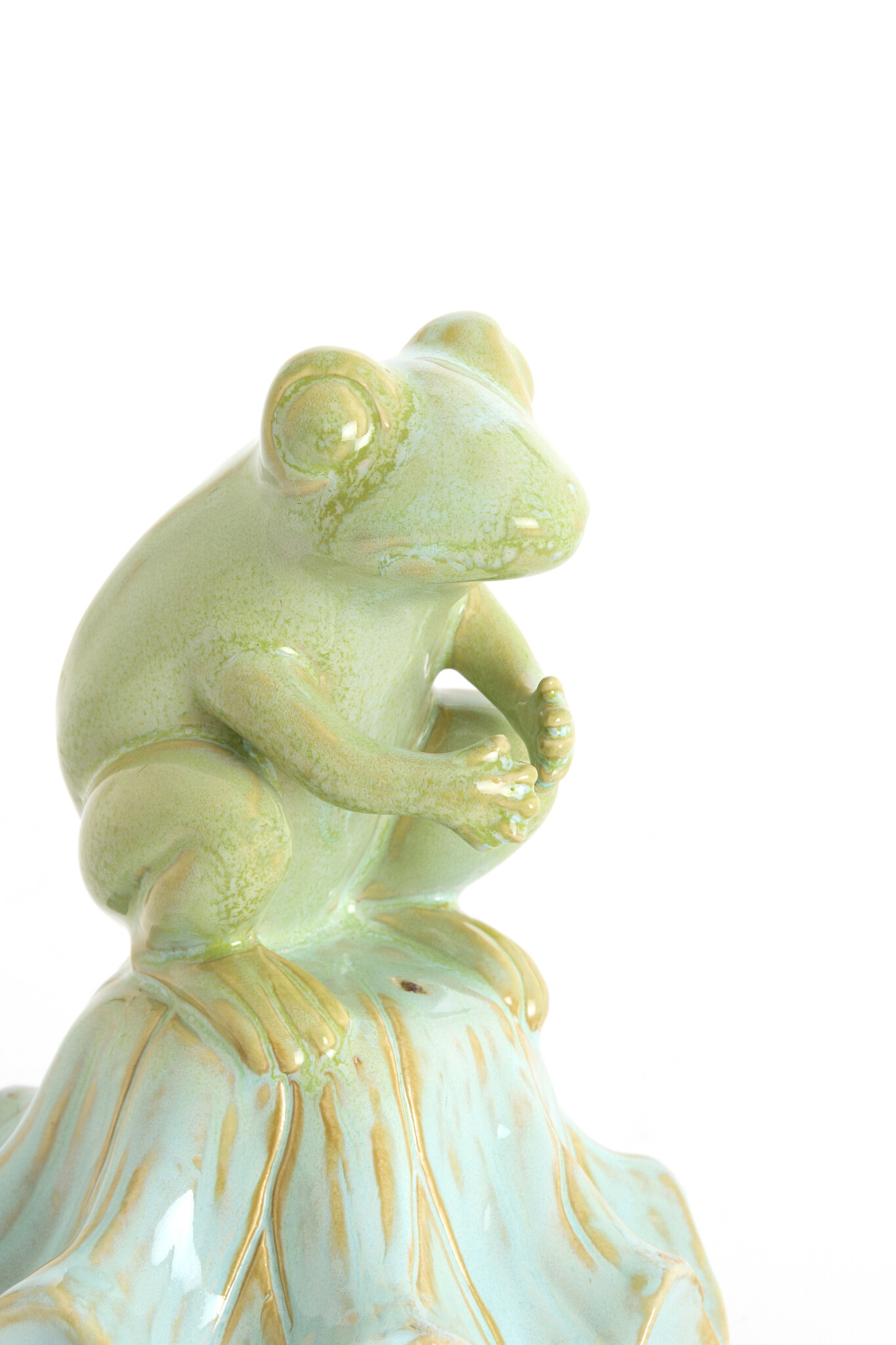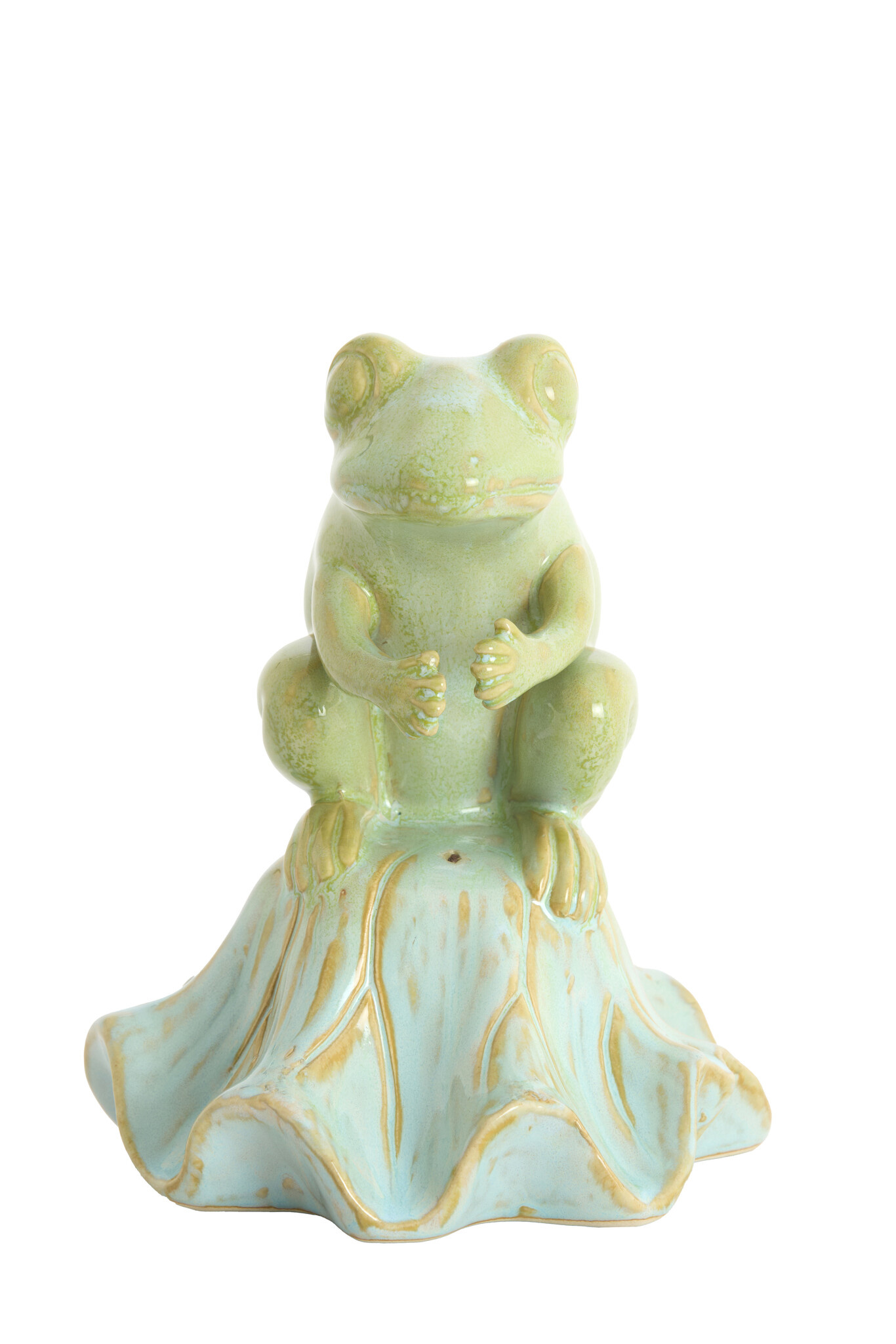 Met zijn afmeting van Ø15,5 x 19,5 cm is dit ornament perfect geschikt als blikvanger op een dressoir, vensterbank, bijzettafel of in een open kast. De kikker staat symbool voor rust, natuur en speelsheid, waardoor dit decoratiestuk moeiteloos past binnen botanische, landelijke en eclectische woonstijlen.