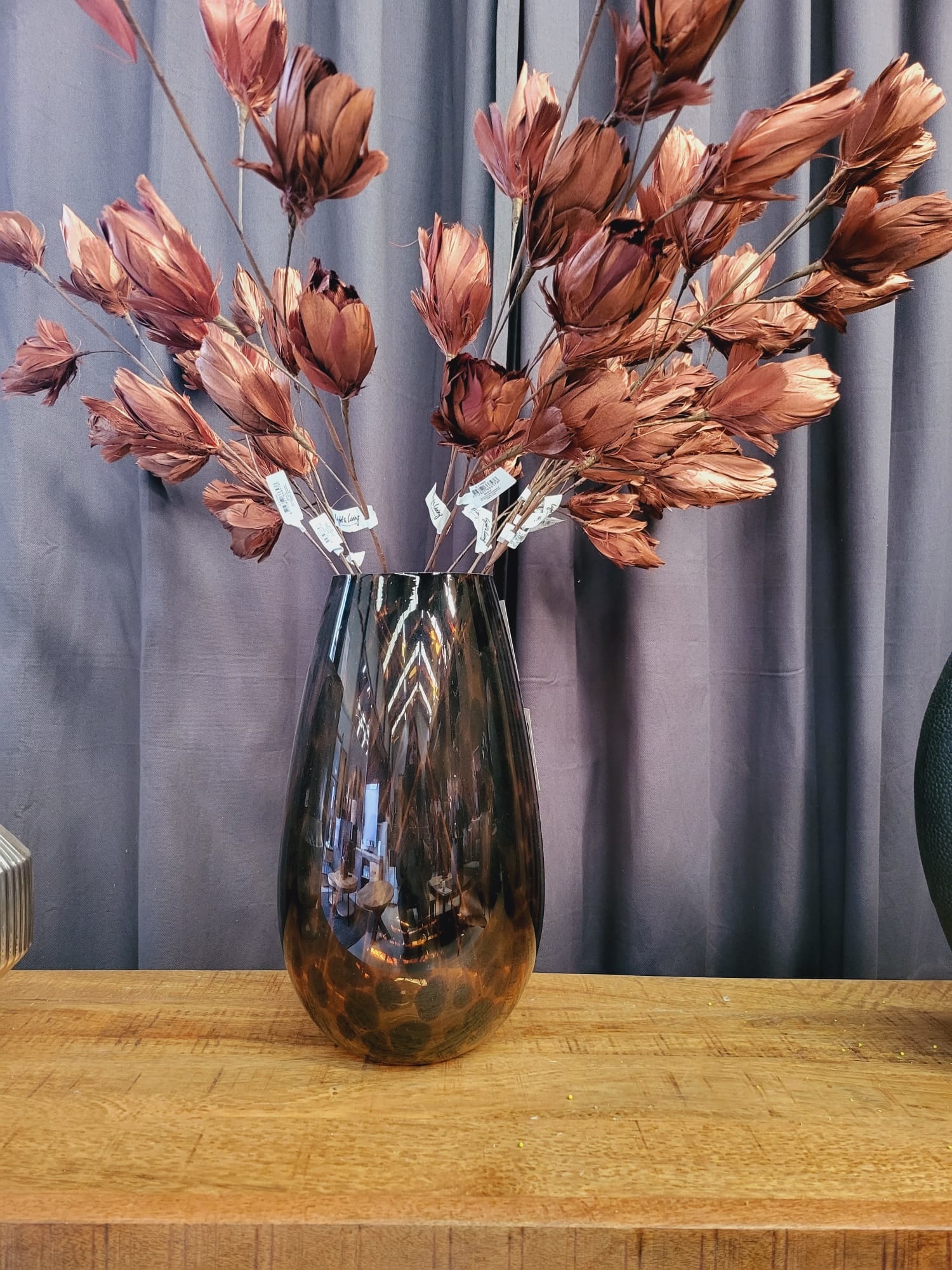 Deze kunsttak heeft 6 prachtige bloemen. De bloemen zijn naar wens te schikken. Vul een mooie vaas met deze bloemen. Ook leuk voor in de kerstboom. Op deze foto zie je de Tulip takken in vaas Kaela.