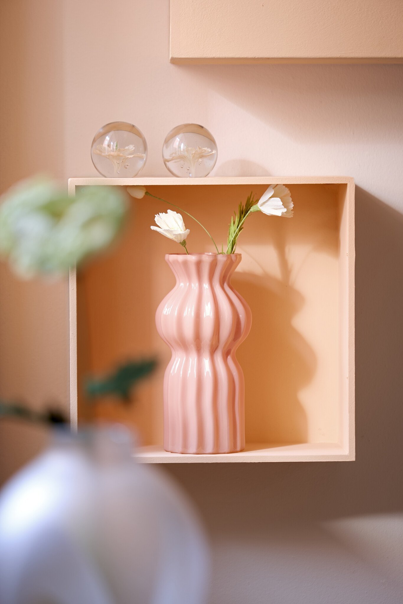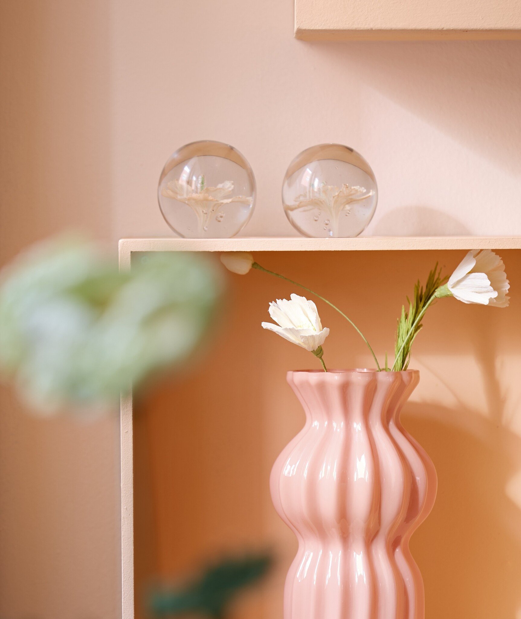 Met zijn compacte formaat van Ø8 x 8 cm is dit ornament perfect geschikt als klein accent op een salontafel, vensterbank, dressoir of nachtkastje. Ook in een open kast of gecombineerd met andere glazen objecten komt het ornament prachtig tot zijn recht. De zachte kleuren zorgen voor een rustige uitstraling en passen moeiteloos binnen romantische, moderne en minimalistische woonstijlen.
