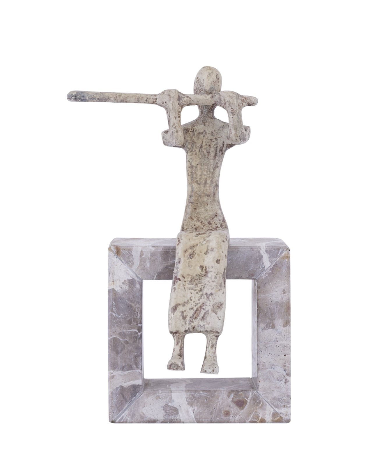 Ornament Aleria Beige dame met fluit op marmeren voetstuk – PTMD