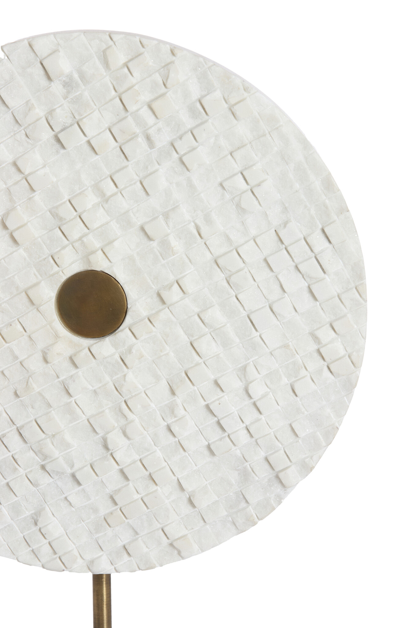Ornament op voet Yvo van Light & Living is een prachtig stuk dat je huis een vleugje sfeer en luxe geeft. Opvallend is het mooie blokjes patroon op het witte steen. De warm witte tint met goudkleurig metaal voegt een tijdloze elegantie toe. De afmetingen van 50 cm hoog en 12 cm diep maken Yvo geschikt voor ondiepe oppervlaktes, zoals bijvoorbeeld een vensterbank. Deco beeld Yvo is een decoratieve verrijking die past in elke ruimte in je huis, of het nu je woonkamer, slaapkamer of hal is. Verkrijgbaar in 2 afmetingen.