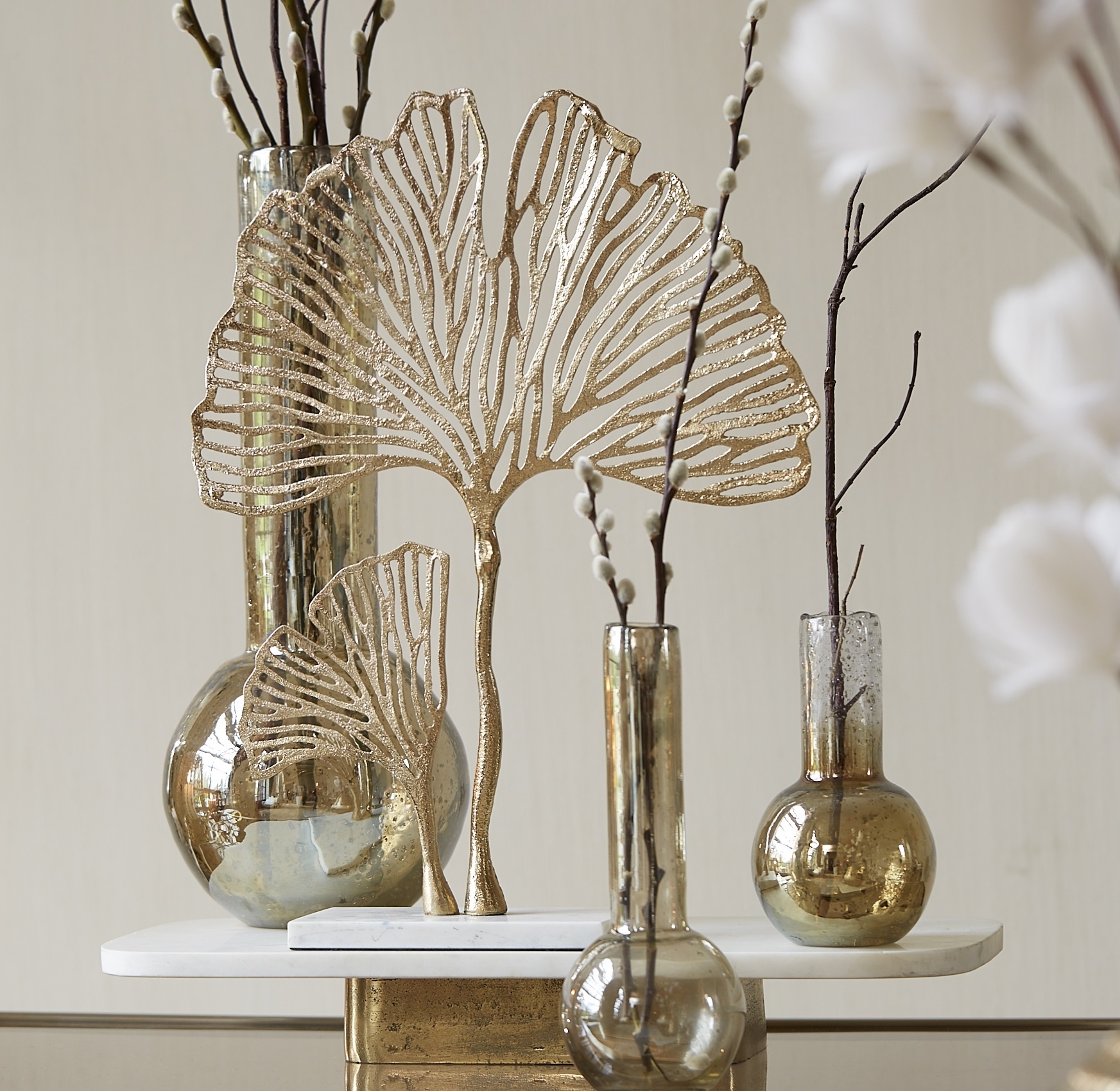 Zoek je een unieke accessoire dat jouw woning opfleurt? Deze decoratie is de perfecte aanvulling op elke kamer. Met dit ornament creëer je heel gemakkelijk een chique en bijzondere sfeer. De marmeren voet met het mooie gouden opengewerkte blad maakt dit een heel sfeervol interieurstuk. Plaats er bijvoorbeeld een (led) kaars achter om het licht mooi door het opengewerkte blad te verspreiden.