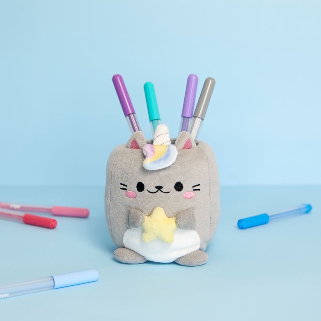 Balvi Pennenbakje Fluffy Kawaii Starry Grijs. Dit is het perfecte cadeau voor kattenliefhebbers en kinderen. Het is lekker zacht en handig voor je pennen. Maak de buitenkant schoon met een doek of wasmachine. Inclusief een verwijderbare interne structuur die hem in perfecte vorm houdt.