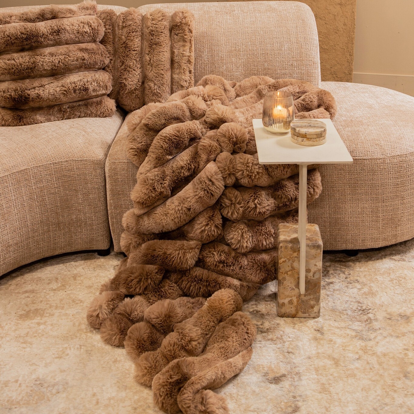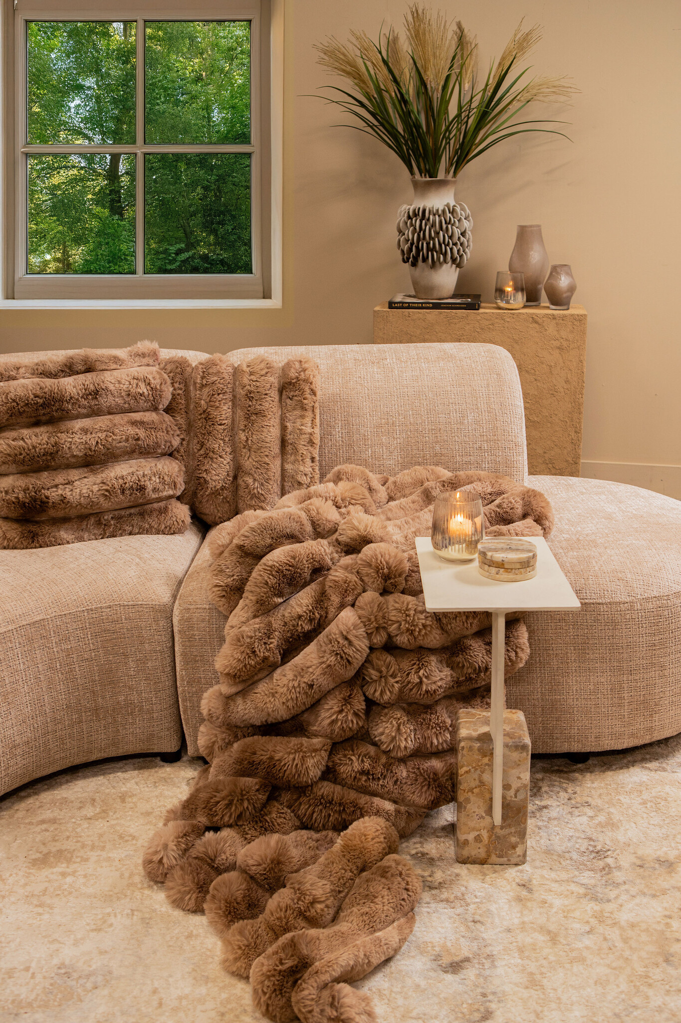 Het plaid voelt zacht en cosy aan en is gemaakt van hoogwaardig polyester, waardoor het niet alleen comfortabel is maar ook vormvast en onderhoudsvriendelijk. De combinatie van handmade en machine made afwerking geeft het plaid een luxe uitstraling met een hoogwaardige kwaliteit.