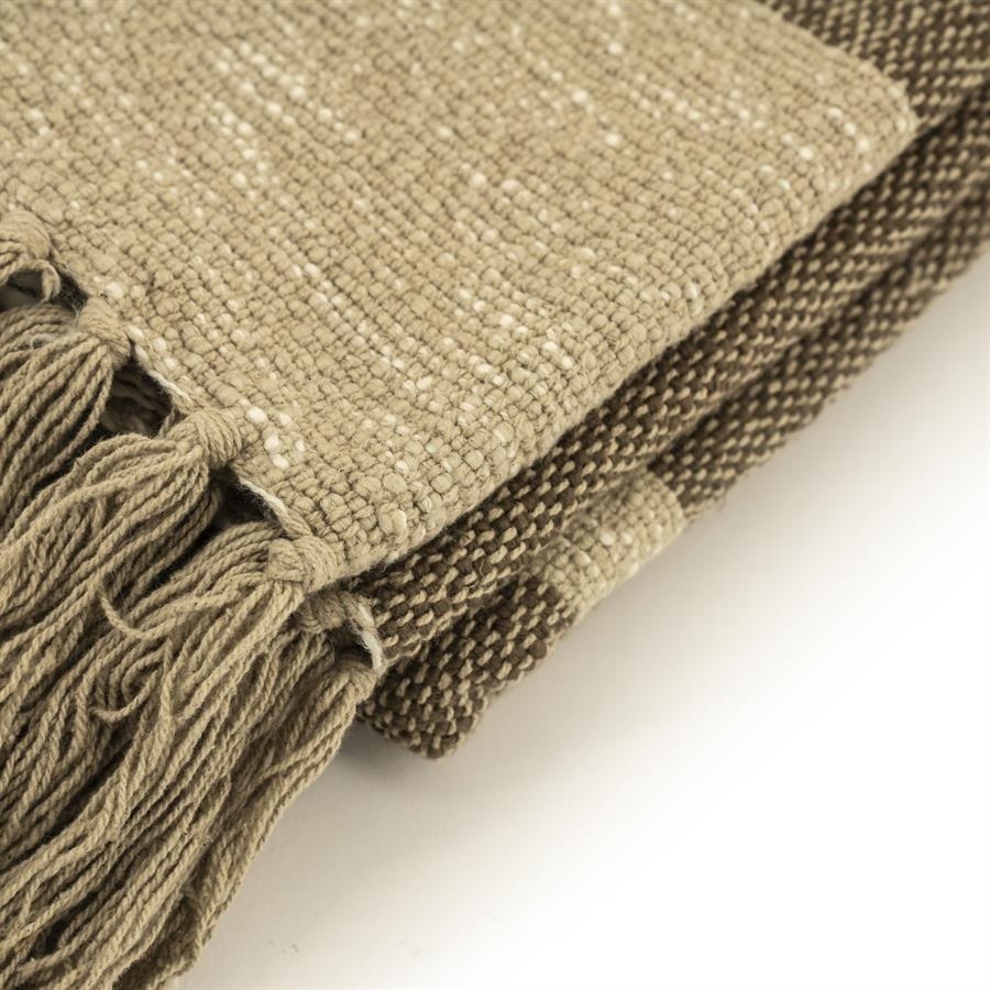 Plaid Linje van By Boo is een must-have accessoire voor een warme en gezellige sfeer in huis. Met zijn afmetingen van 170x130 cm is deze bruine plaid perfect om je interieur op te fleuren. Gemaakt van 100% katoen, voelt de plaid heerlijk zacht aan en zorgt voor extra comfort tijdens ontspannen avonden op de bank. De rechthoekige vorm en de warme kleur maken dit een tijdloos en veelzijdig stuk dat moeiteloos past in elk interieur.