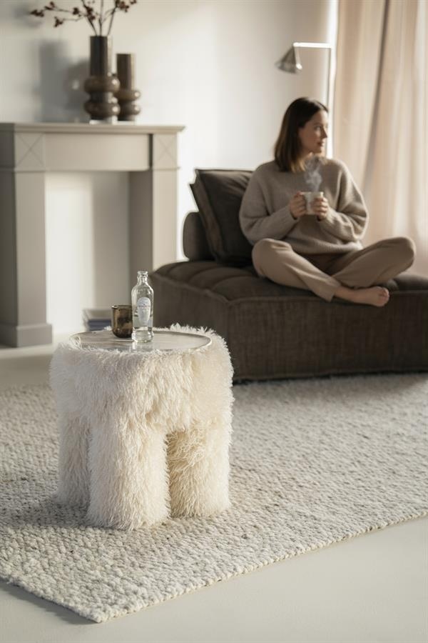 De Poef Doodly beige van By Boo brengt een speels en eigentijds accent in je interieur. Dankzij de fluffy bekleding straalt deze poef warmte en gezelligheid uit, terwijl het compacte formaat hem multifunctioneel maakt. Gebruik hem als extra zitplaats, voetenbank of als opvallend decoratief element.