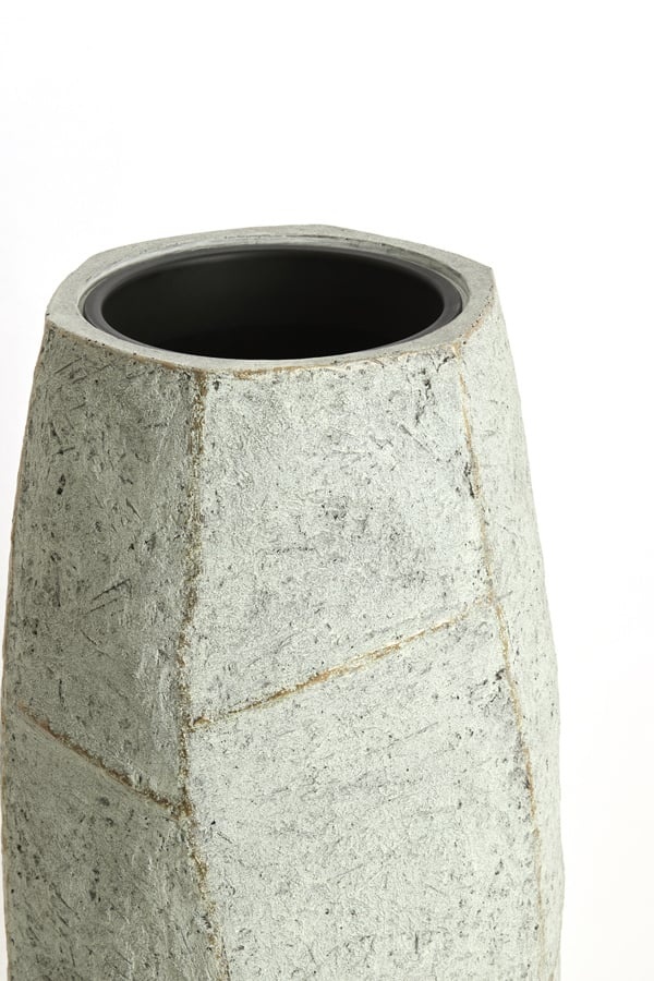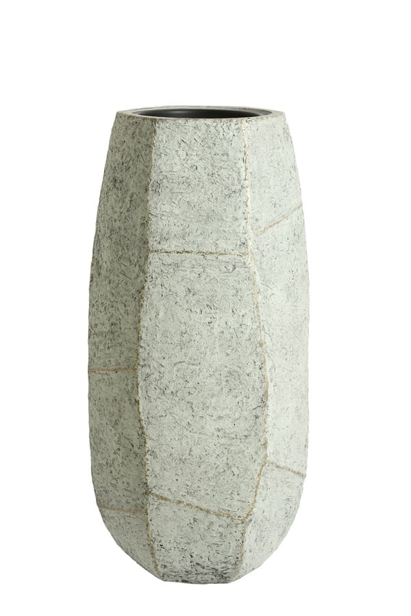 Wat de AGELO pot onderscheidt, is de onregelmatige, handgemaakte look. De zichtbare lijnen en licht ruwe textuur zorgen voor een authentieke uitstraling, alsof de pot uit natuursteen is gehouwen. Dit maakt elke pot uniek en geeft je interieur of tuin een exclusieve touch.