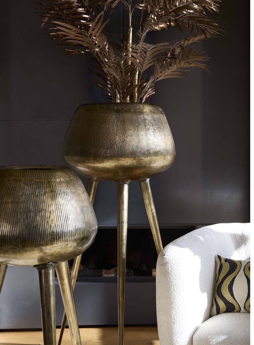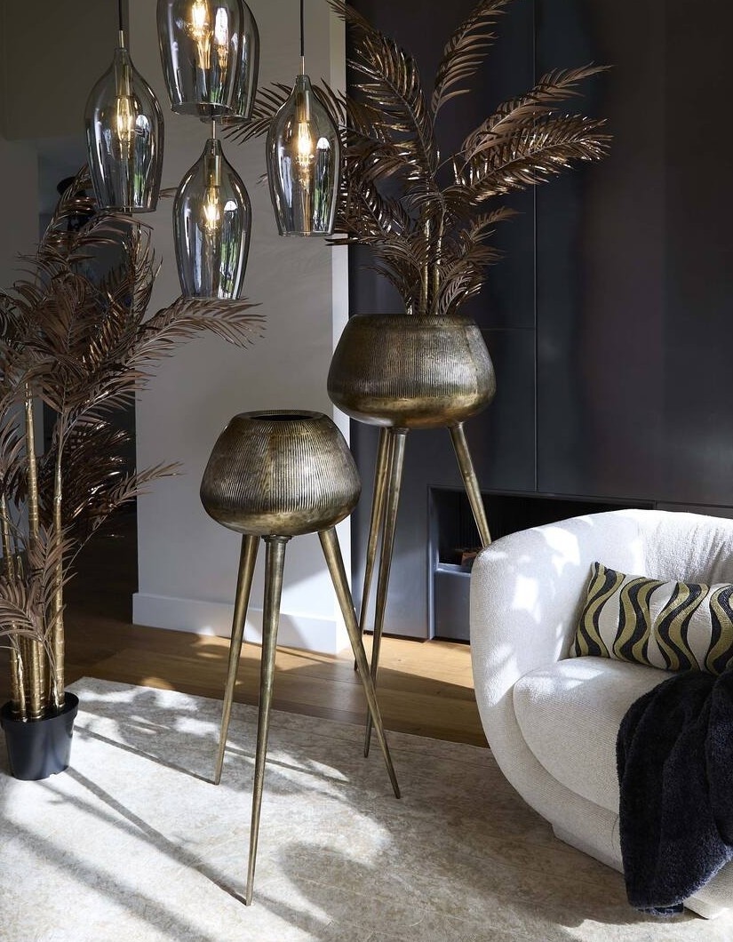 De MARIELLE pot op voet is een stijlvolle toevoeging aan ieder interieur. Deze decoratieve pot combineert een chique gouden afwerking met een elegant, slank onderstel van metaal. Het ronde ontwerp en het opvallende design maken deze pot ideaal als eyecatcher in de woonkamer, hal of naast een kast.