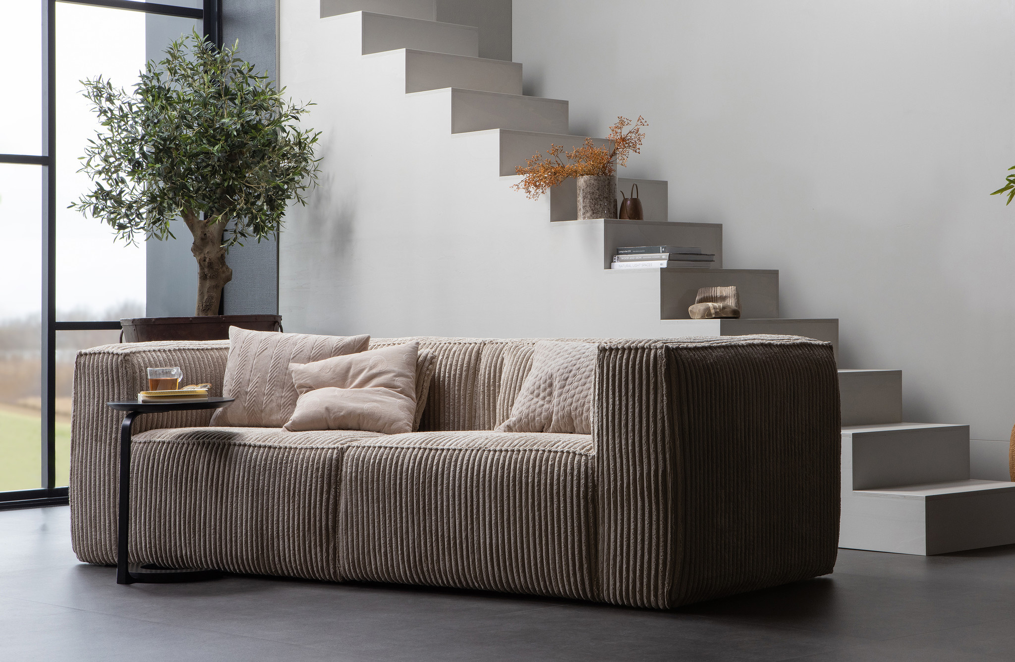 - Zandkleurige velvet stof (100% katoen) voorzien van 100% polyester vulling