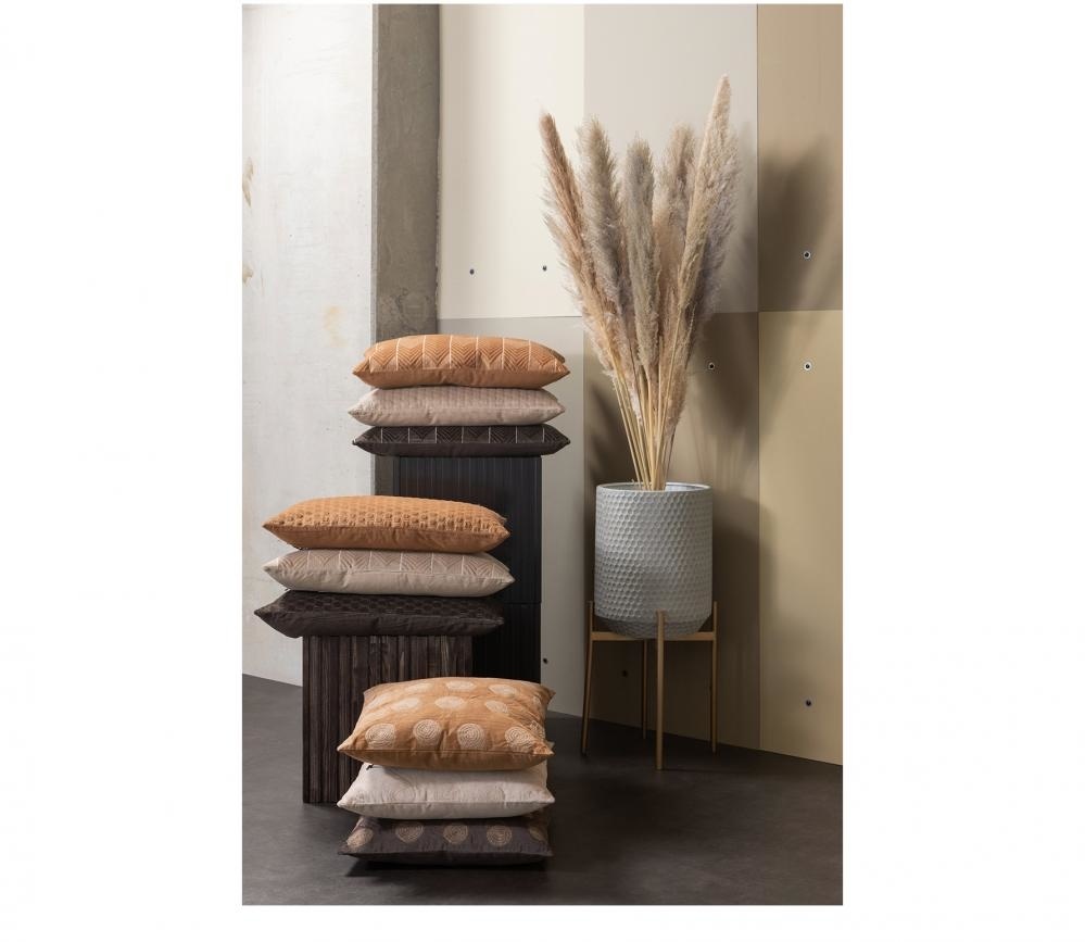 Het Riv kussen uit de collectie van het Nederlandse merk WOOOD Exclusive is een sfeervol sierkussen voorzien van ingestikt cirkel patroon op de voorzijde. Riv is gemaakt van velvet (100% katoen) in een zandkleurige tint. De achterzijde van het kussen is gemaakt van 100% katoen voorzien van een rits, zodat deze kussenhoes afneembaar is. Het kussen wordt geleverd voorzien van vulling (100% polyester). Kussenhoes Riv is geschikt voor een aparte en koude handwas.