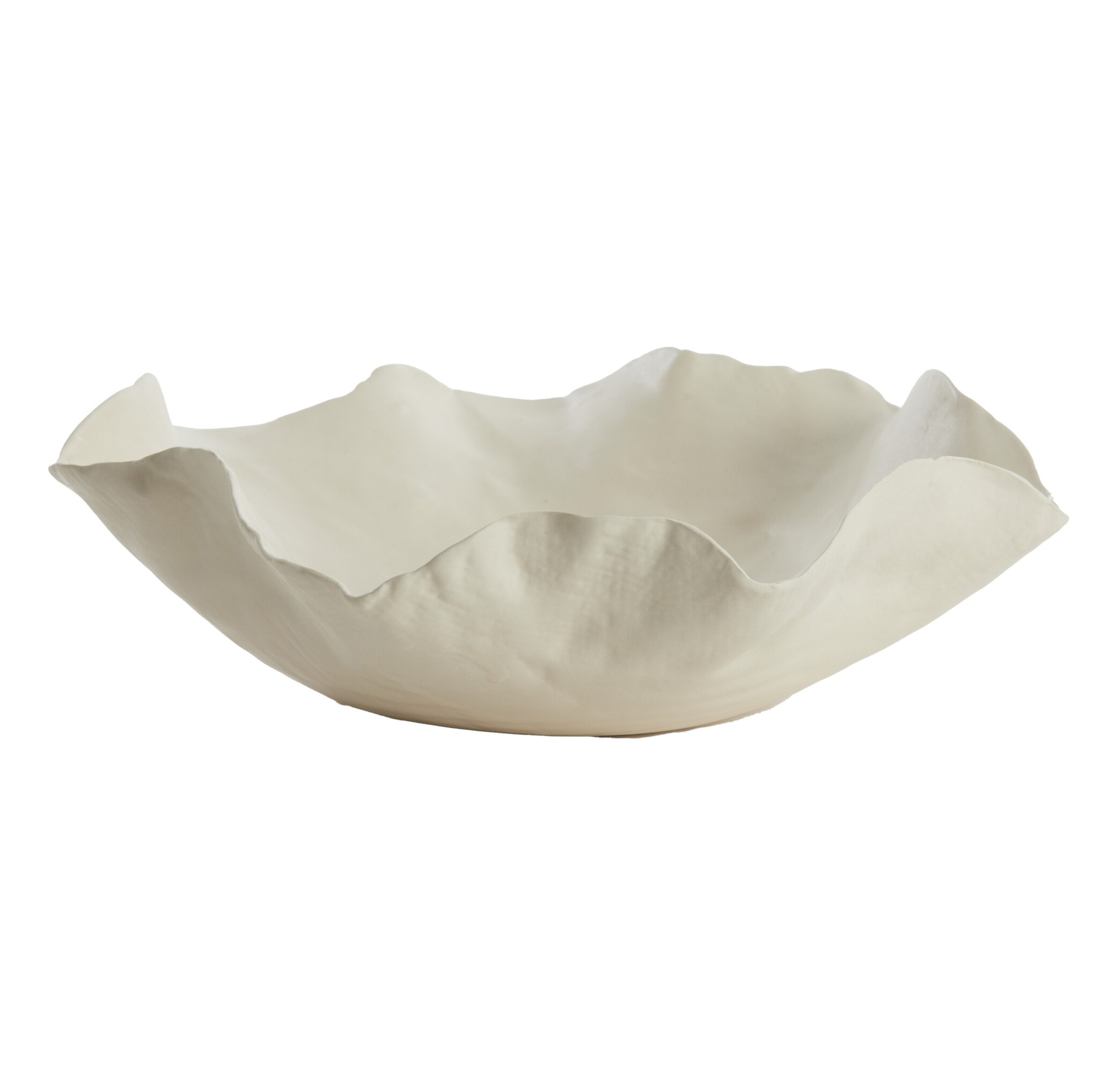 Deze prachtige keramieken schaal in een zachte crème tint is een ware blikvanger in elk interieur. Met haar organische vorm en subtiel glanzende afwerking straalt ze een unieke charme uit. De royale afmetingen van 34x31x11 cm maken haar perfect geschikt als centerpiece op tafel, fruitschaal of decoratief object op een dressoir.
