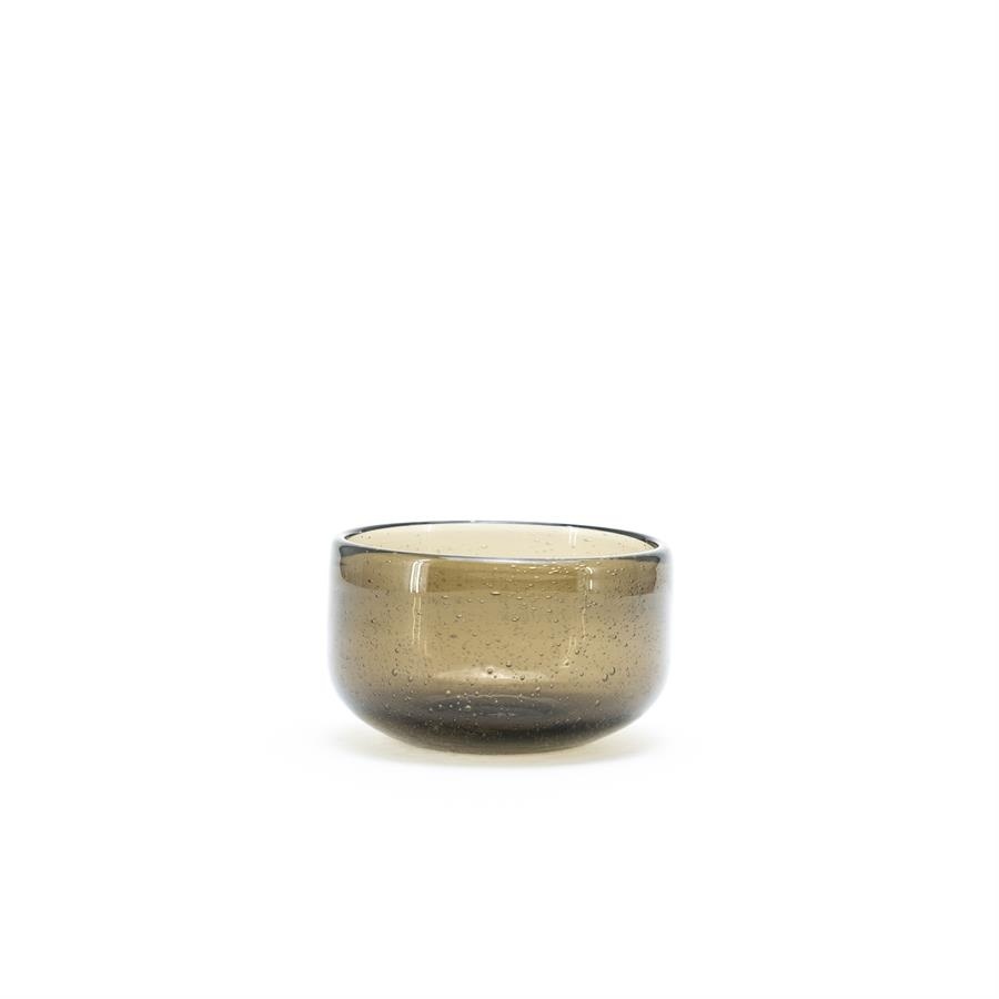 Een mooi doorzichtig schaaltje met bruine tint. In het glas zijn bubbles verwerkt. Dit geeft een mooi effect. Combineer dit glas met de karaf of met bijpassende glazen!
