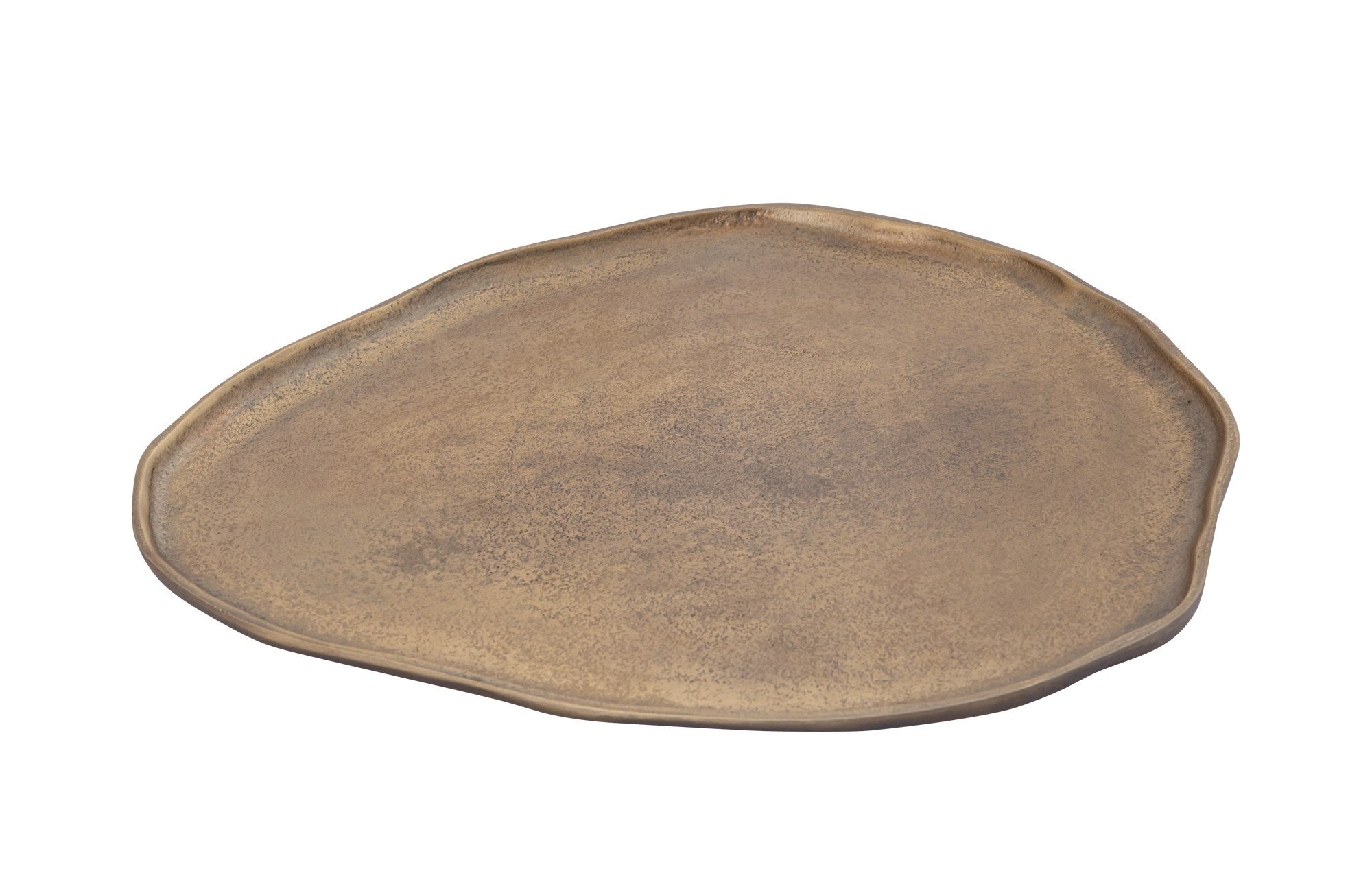 Met een formaat van 36 x 30 x 1 cm is de schaal perfect om decoratieve objecten, kaarsen of droogbloemen op te presenteren. Maar ook zonder accessoires is dit stuk een prachtige eyecatcher op een salontafel, dressoir of sidetable. De subtiele antique brass tint geeft warmte en karakter aan moderne, industriële en luxe woonstijlen.
