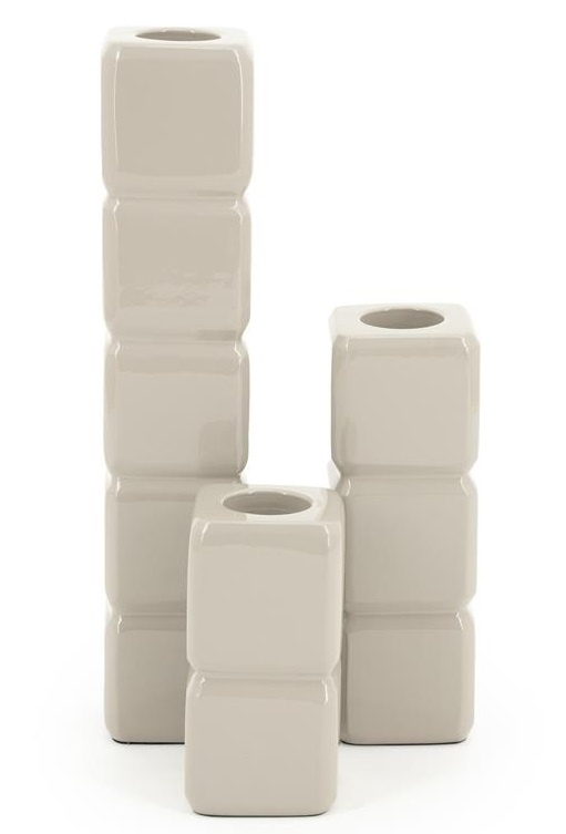 Verrijk jouw interieur met de Set van 3 kandelaren Cube in de kleur taupe van By Boo. Deze prachtige kandelaren zijn een perfecte mix van stijl en functionaliteit, waardoor ze een onmisbare toevoeging zijn aan jouw huis. De kandelaren heeft 3 verschillende hoogtes waardoor het kaarslicht mooi verspreid wordt.