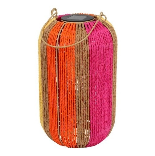De Solar Lantaarn Milan M Veelkleurig is een kleurrijke toevoeging aan iedere tuin, balkon of seizoensdecoratie. De lantaarn combineert natuurlijk jute met warme tinten zoals rood, oranje, geel en bruin. Hierdoor ontstaat een speels maar toch rustig lichtobject dat perfect past bij de voorjaarscollectie van De Woon Winkel.