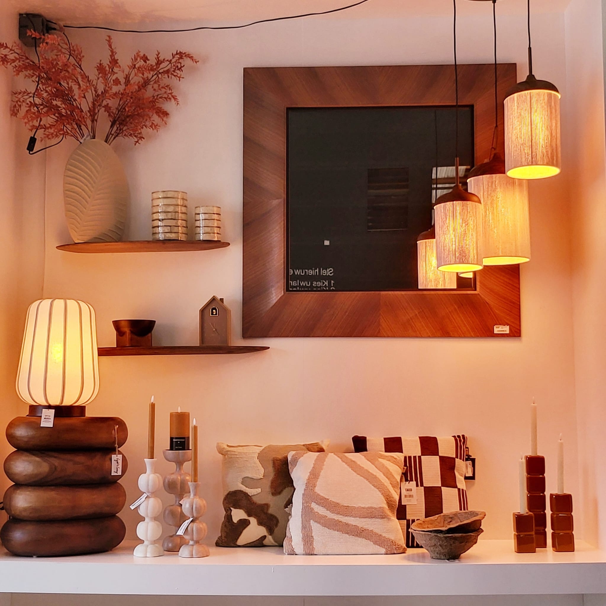 De Gezzy-serie is verkrijgbaar in verschillende vormen – rond, vierkant en rechthoek – zodat je altijd een model vindt dat past bij jouw ruimte. Naast de naturel houtkleur is deze spiegel ook verkrijgbaar in een diep donkerbruine tint, ideaal voor wie op zoek is naar contrast of een warm accent.