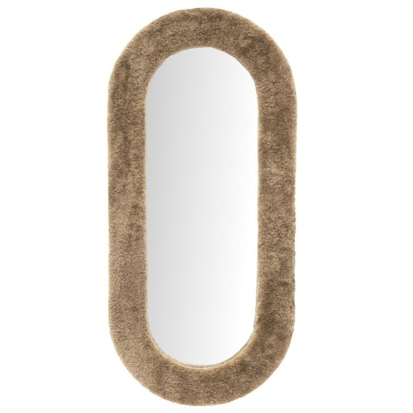 De Spiegel Kiss groot valt op door zijn ovale vorm en de brede rand die bekleed is met een zachte stof in een stijlvolle bruine kleur. Dit geeft de spiegel een warme, moderne uitstraling.