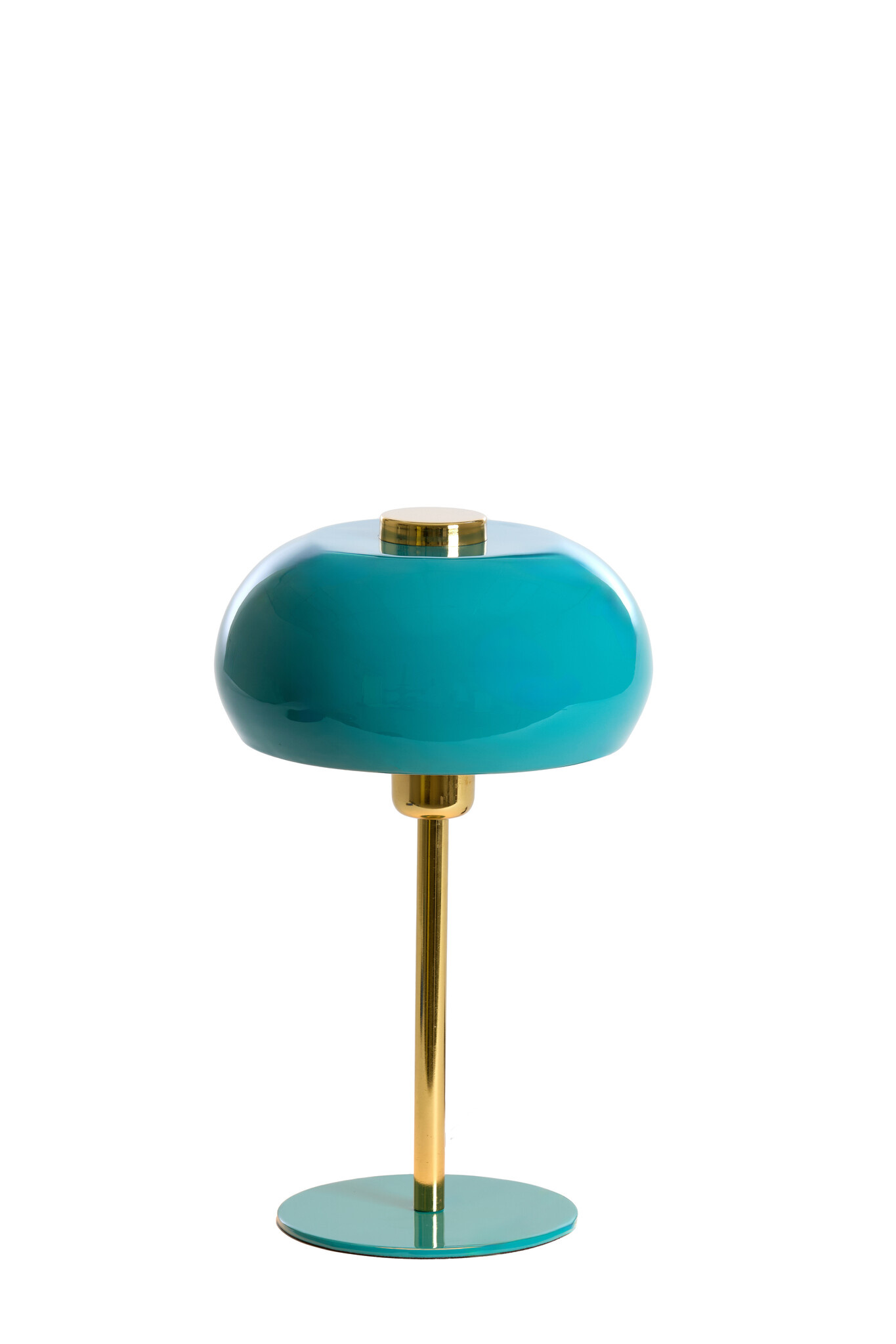 De afgeronde kap en ronde voet zorgen voor een zachte, moderne vormgeving. Het gouden middenstuk geeft de lamp een chique uitstraling en vormt een mooi contrast met het frisse blauw. Hierdoor past tafellamp SURIN perfect in moderne, eclectische, hotel chique en kleurrijke interieurs.
