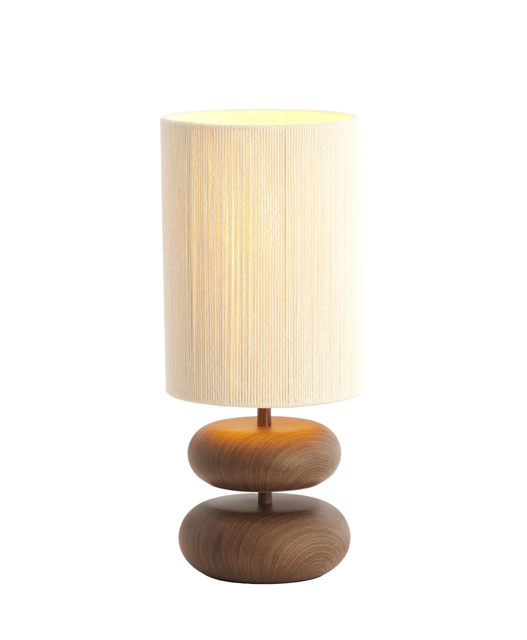 Tafellamp Ø22x50,5 cm DANIALO hout print donkerbruin+touw crème